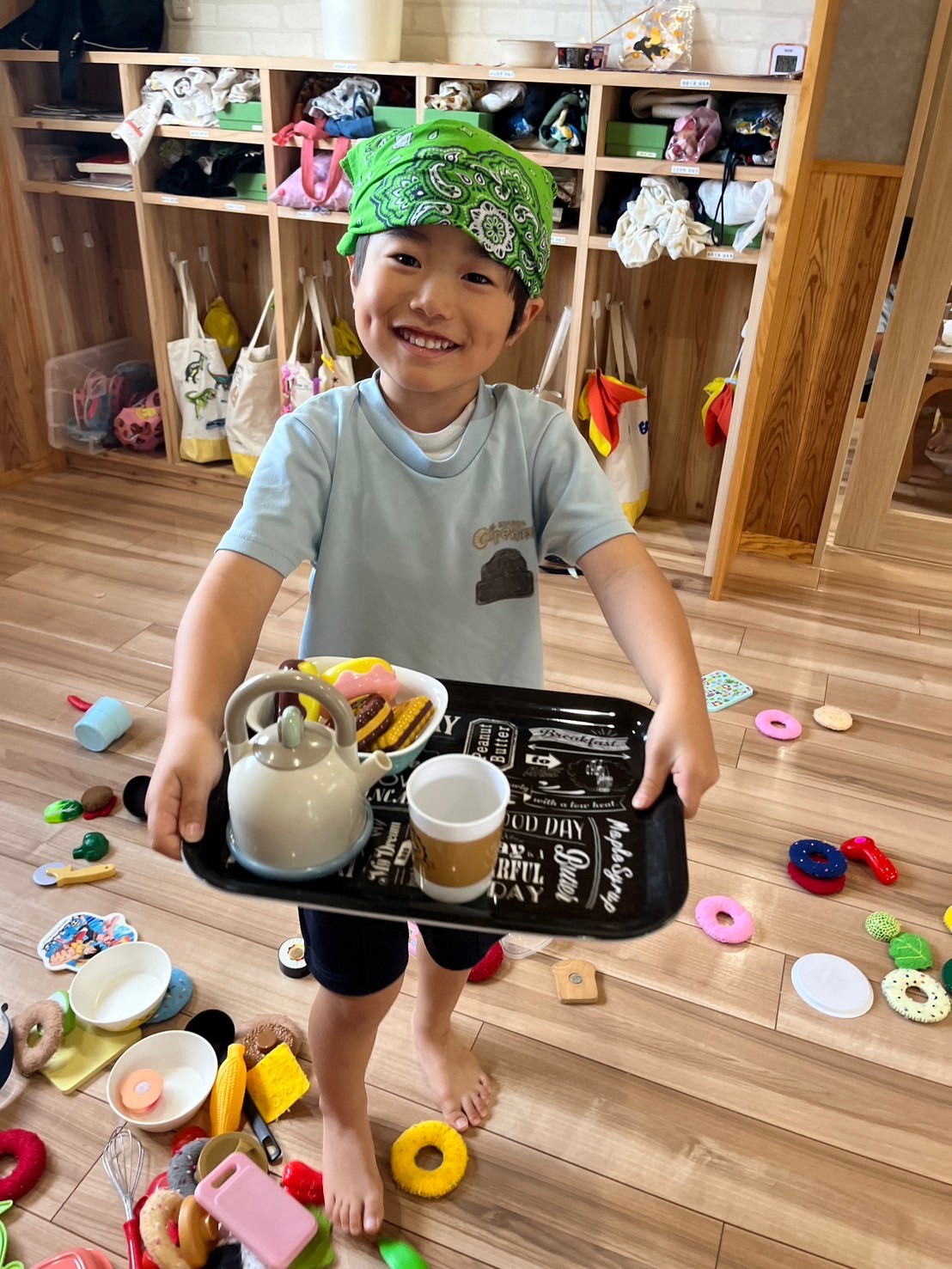 おままごとでは、バンダナをつけてお店屋さんになりきり、大忙しの定食屋さんで先生に美味しいご馳走様を振舞ってくれました👩🏻🍳💕【くりえいと園の今日の給食です】