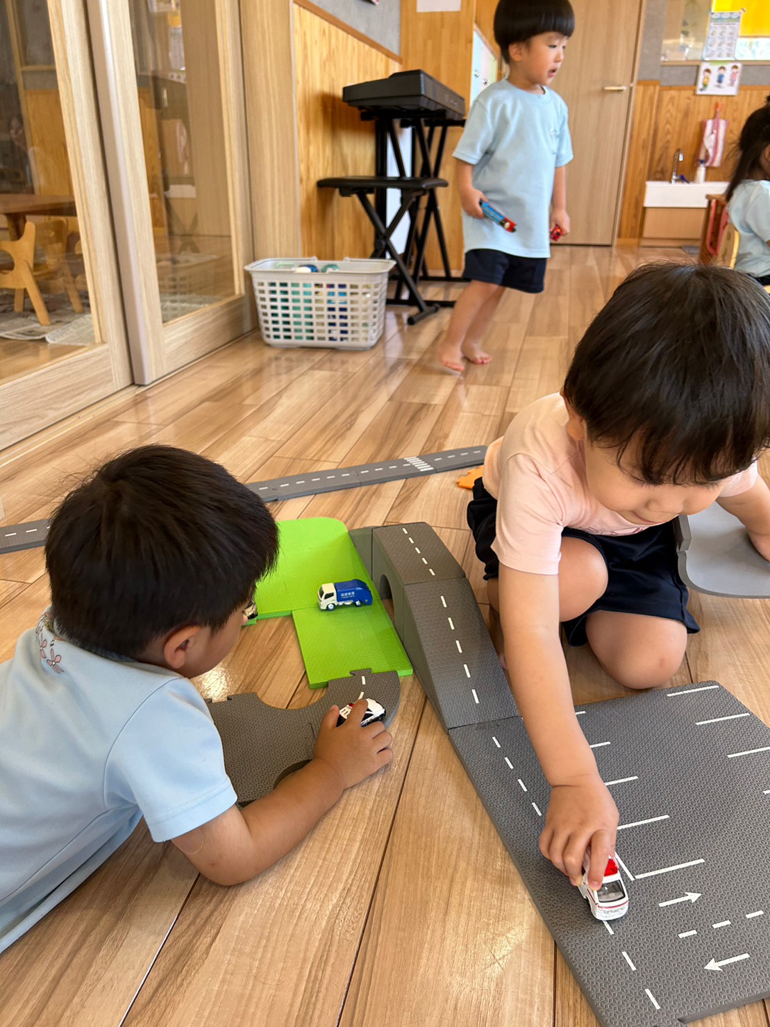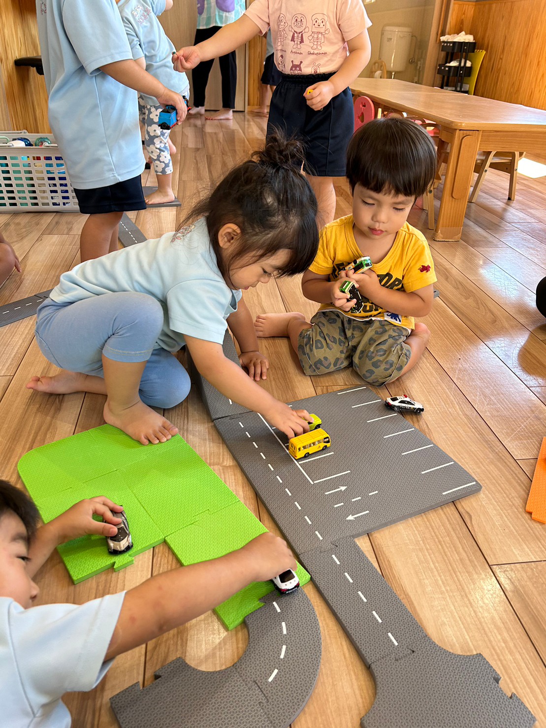 その後は皆んなのリクエストでトミカで遊び、思い思いに道路をつなげたり車🚗を走らせたりして楽しみました💕(下)