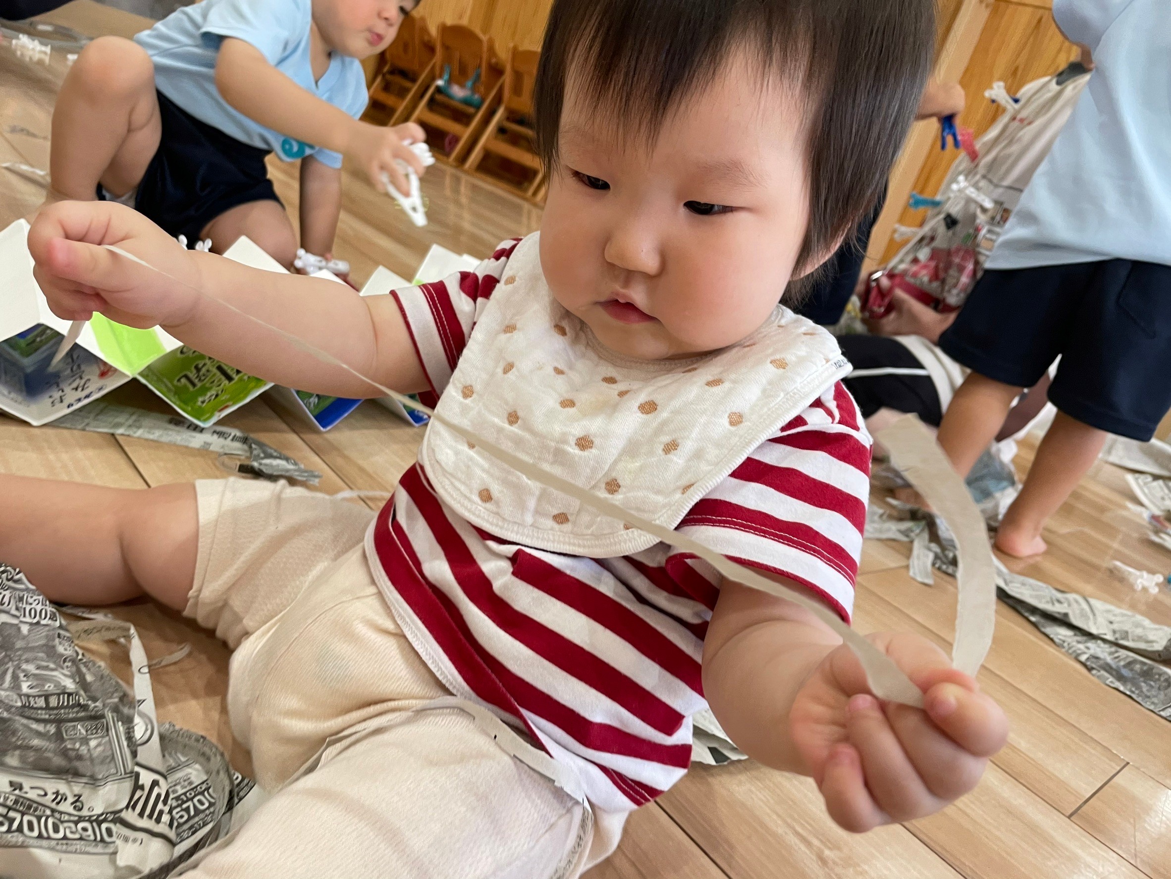 小さくちぎって嬉しそうに見せてくれたり、雨のように降らせたりと、笑顔いっぱいで遊びました😆💕