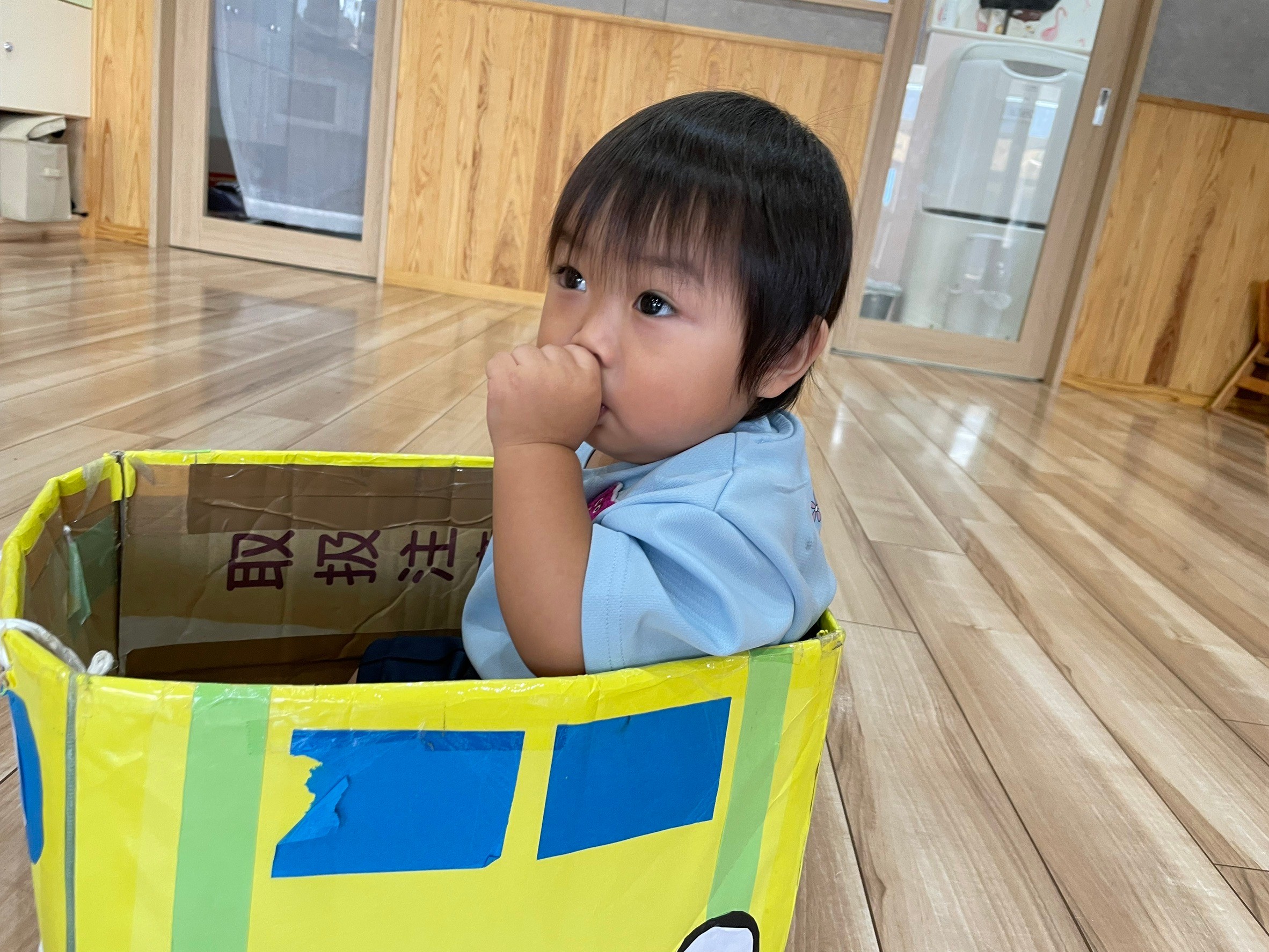 ダンボール電車では、乗りたい気持ちを保育者に伝え、それが伝わると嬉しそうな表情を見せてくれました😍
