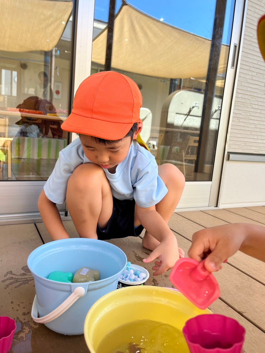 その後はテラスの日陰で水に触れて遊び、涼みました🥳!
