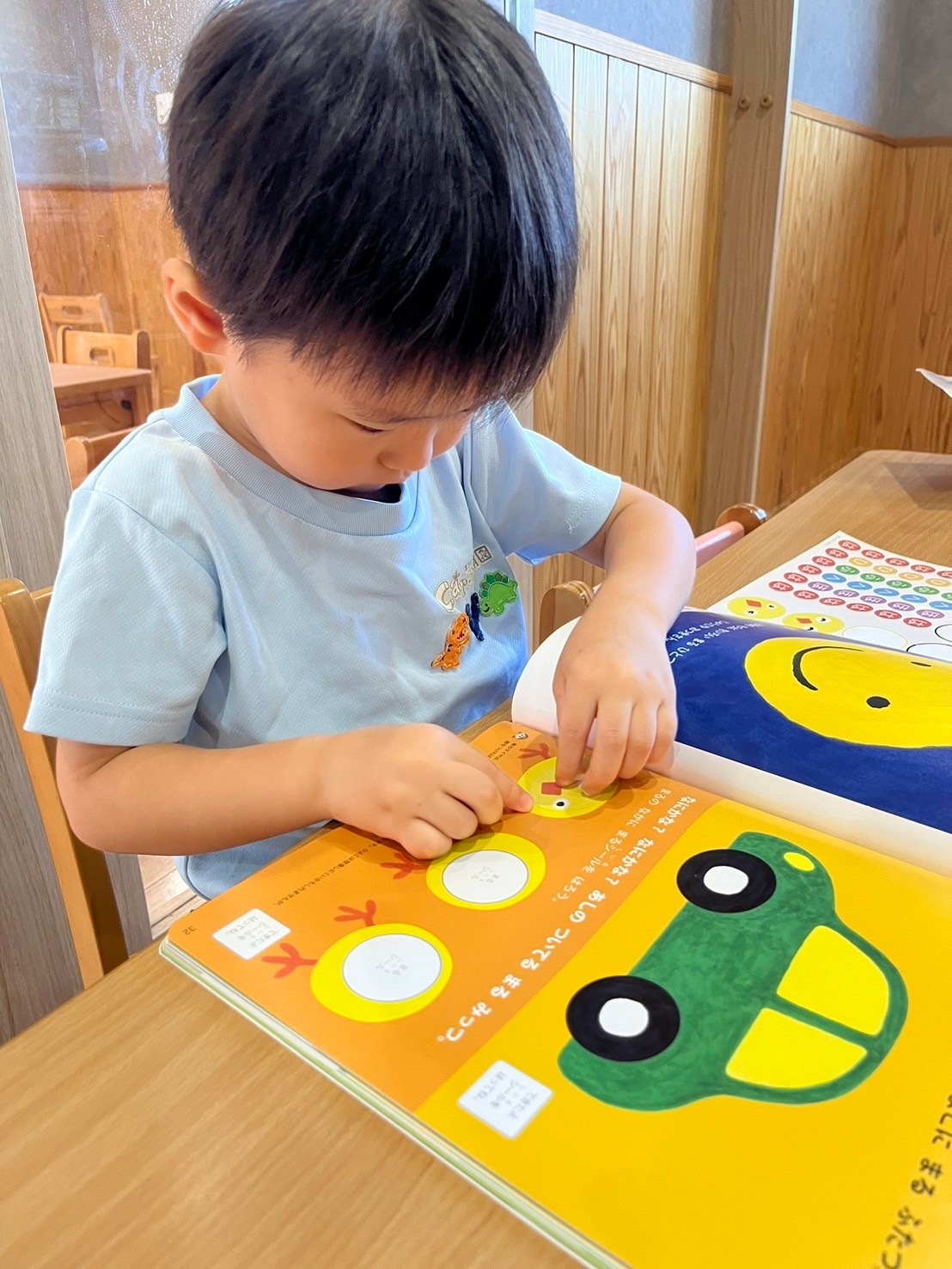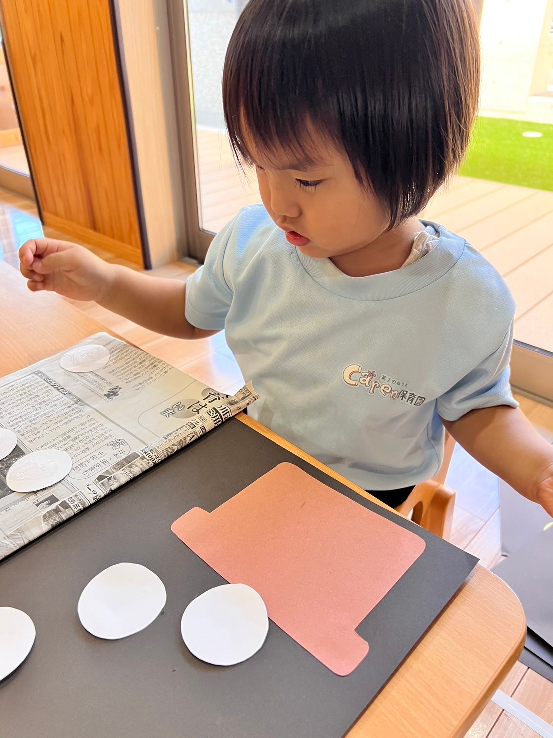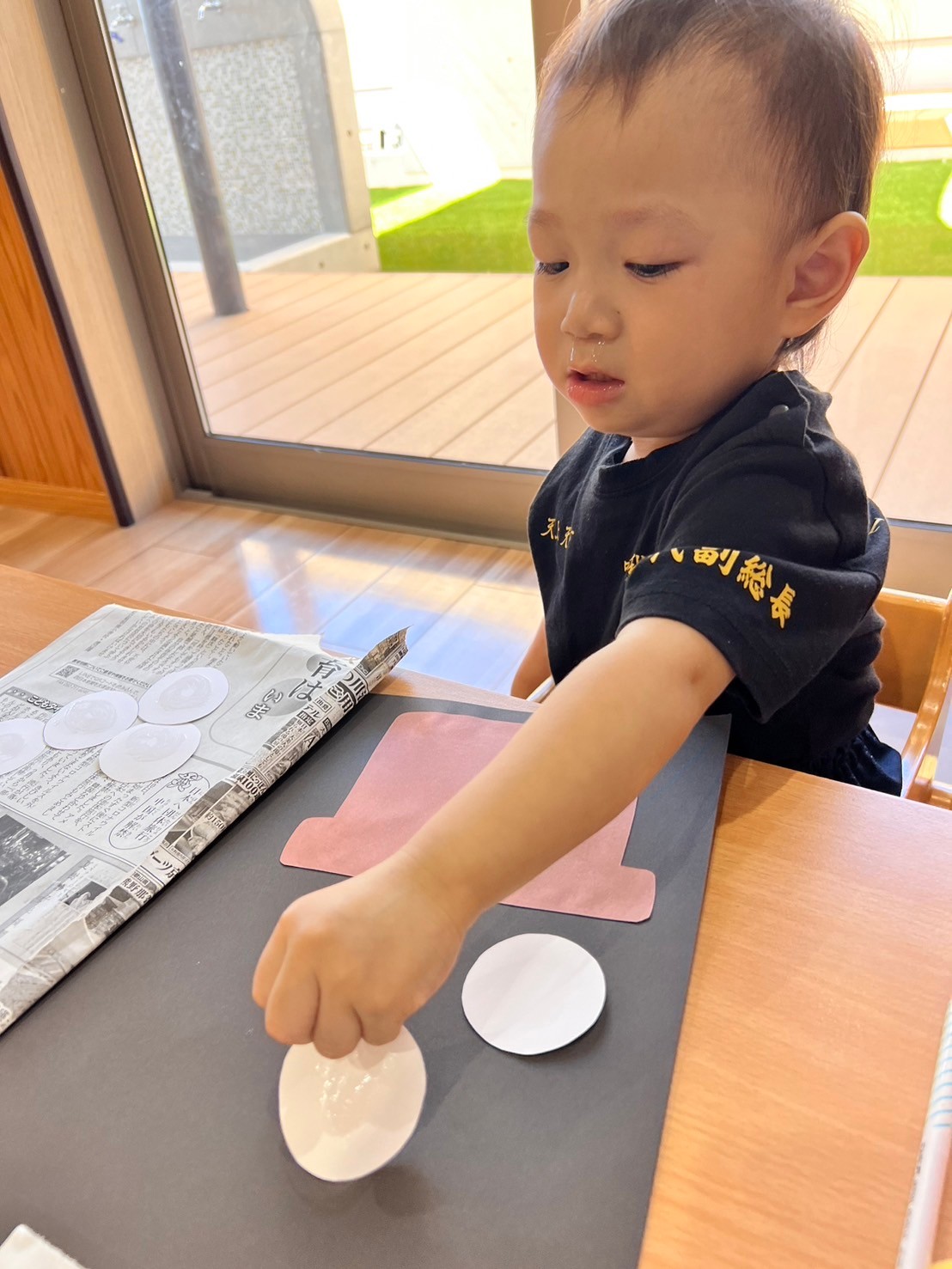 うさぎ組は丸の形探しと、丸のシール貼りをしています🩷