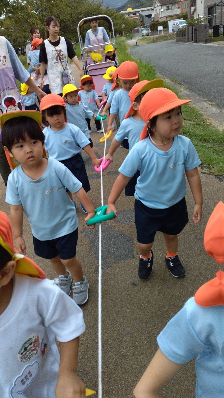 「おさんぽ!😍」が嬉しくて準備もどんどん頑張っていました☺️途中でお店屋さんを見たり桜並木で「さくらがないね〜」と呟いたり、近所の方に「こんにちは〜」「ばいば〜い」とご挨拶したりして歩きましたよ😄公園では総合遊具の滑り台や渡り台で遊びました😆大きな滑り台にも挑戦して楽しそうでした✨お天気も曇り空で涼しかったのでたっぷり遊ぶことができました😄💕いつものように水分補給はこまめにとるようにしましたよ✨これからまたお散歩を楽しんでいきましょうね✌️💕
