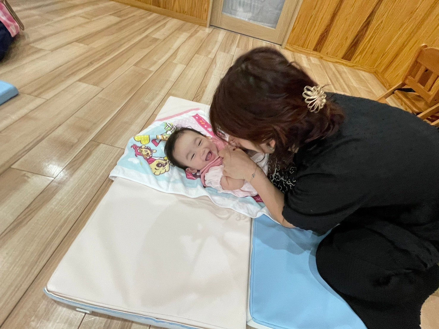 ベビーマッサージをして親子のスキンシップが見られ自然と笑顔になっていたので嬉しく感じました🥰