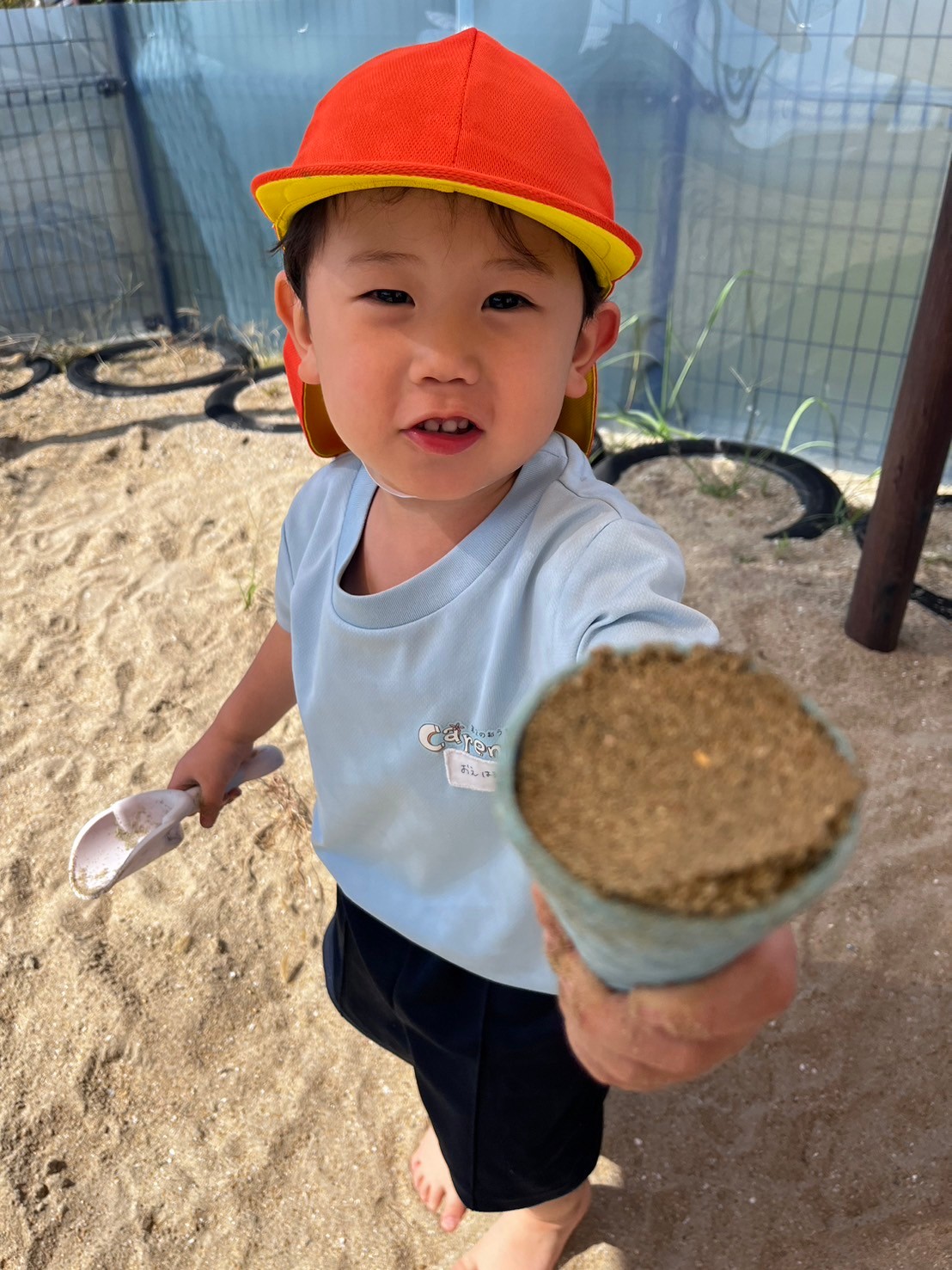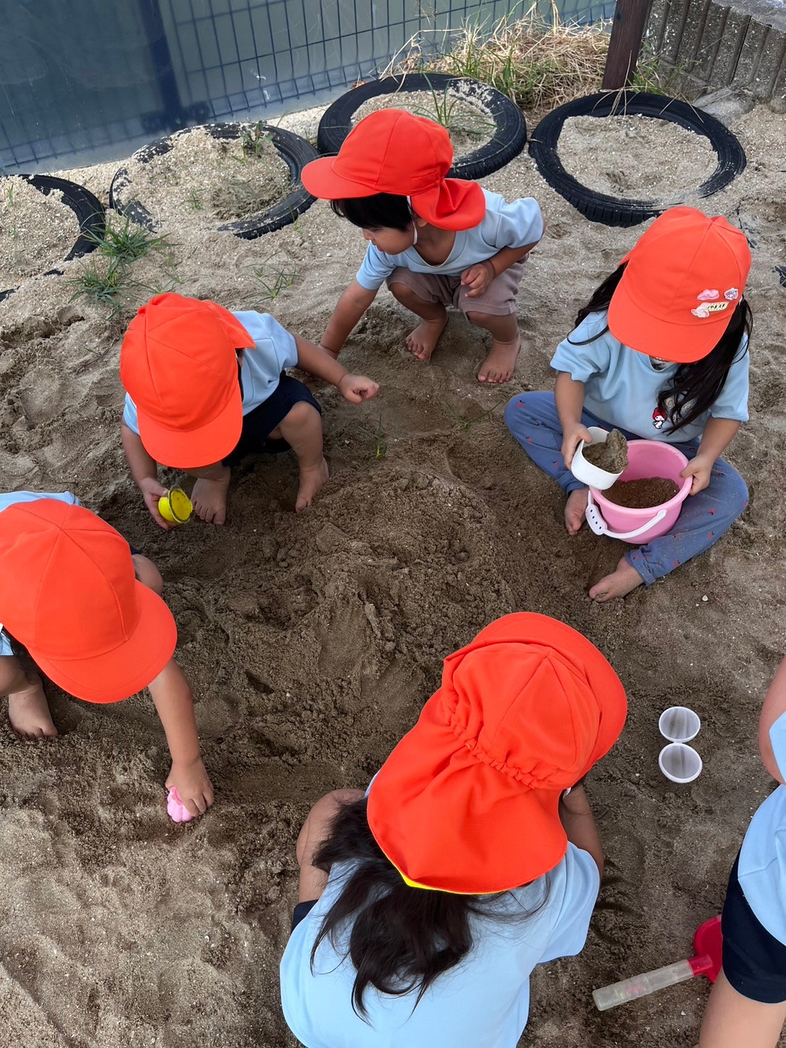 その後は園庭で砂遊びをしました🤭みんなで山を作ったり、おままごとをして食べさせてくれたり楽しい時間でした🥴🎶うさぎ、こあら、きりん組