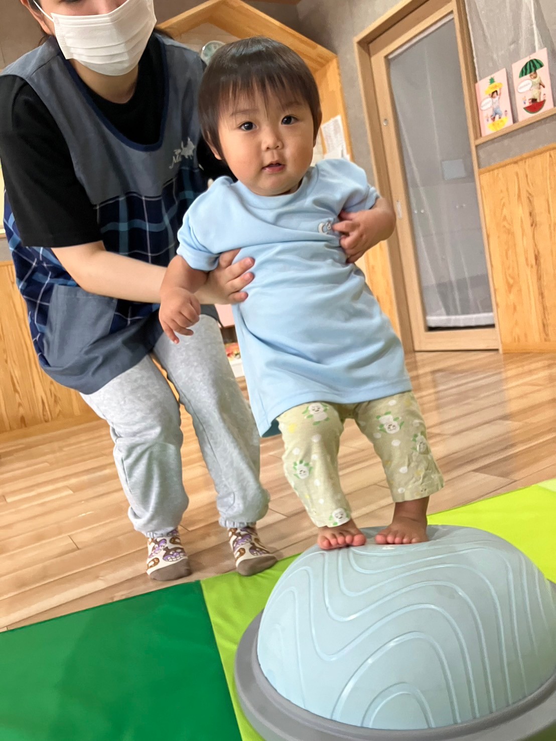 次にマットの上をハイハイで登り降りしたり歩いて通ったりマットを変化してトンネルにしたり、トランポリンも使って身体を動かしましたよ💕その後、園庭でシャボン玉🫧を追いかけたり異年齢交流を楽しんで過ごしました🥰️りすぐみ
