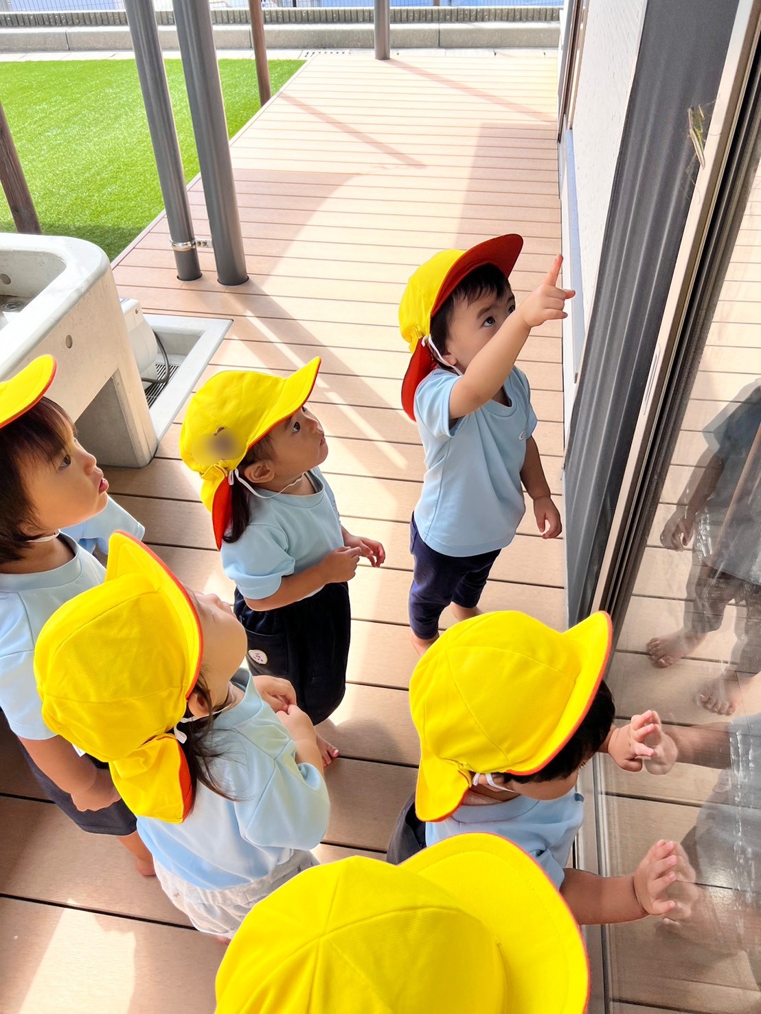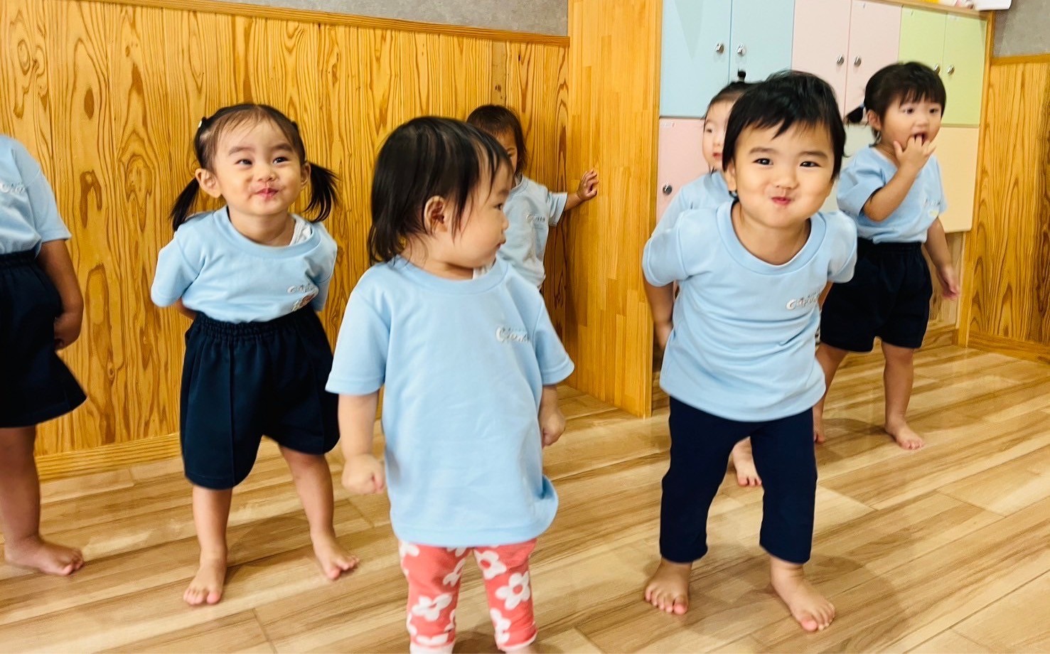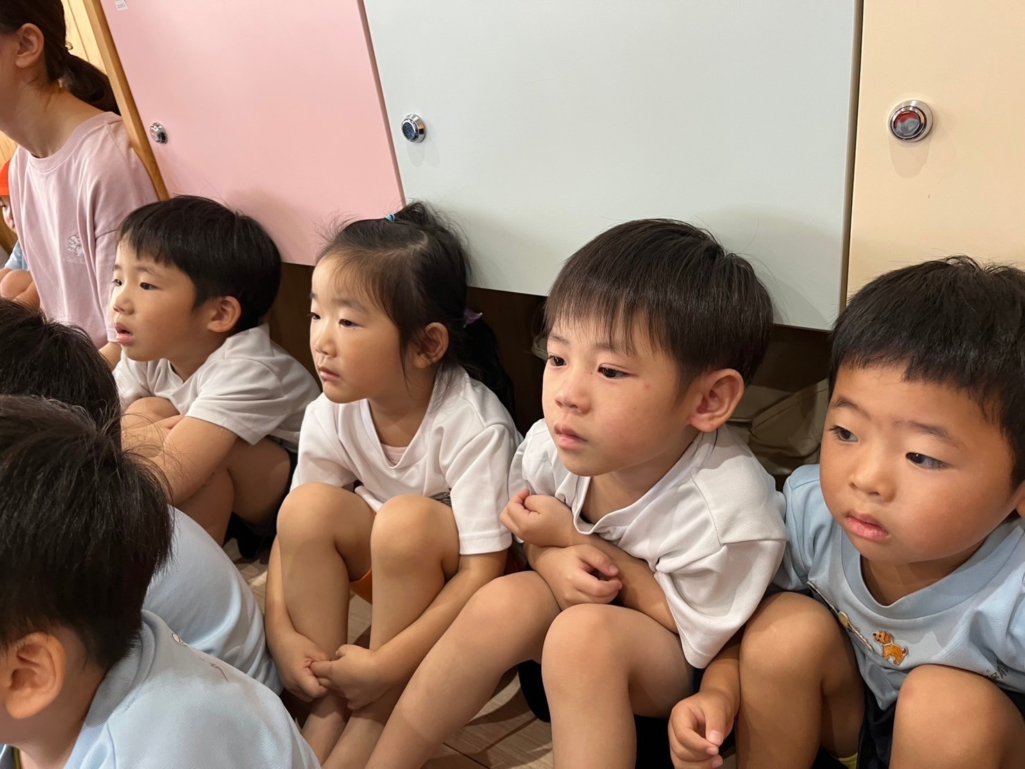 今日は英語教室の日でした✨englishカードに反応していろいろな顔の表情遊びをしたり、歌をうたって楽しそうでした♫それからお花紙でセンサリーボトルを作って遊びました😄お友だちと2人組になってお花紙をビリビリ〜と細かくちぎって仲良くボトルに詰めてお水を入れるとフリフリ〜とシェイクしました。みんな、カラフルな色の変化に興味津々でしたよ😳お部屋を少し暗くしてボトルをライトアップ🔦もしてみました✨「キレイ〜」「これ〜すき〜😍」の声も聞かれました😆その後は園庭で滑り台やトンネル、ボール遊びをして元気いっぱいでした🌞そして避難訓練にも参加しました。だんご虫ポーズをして避難できました✌️うさぎ、こあら、きりん組