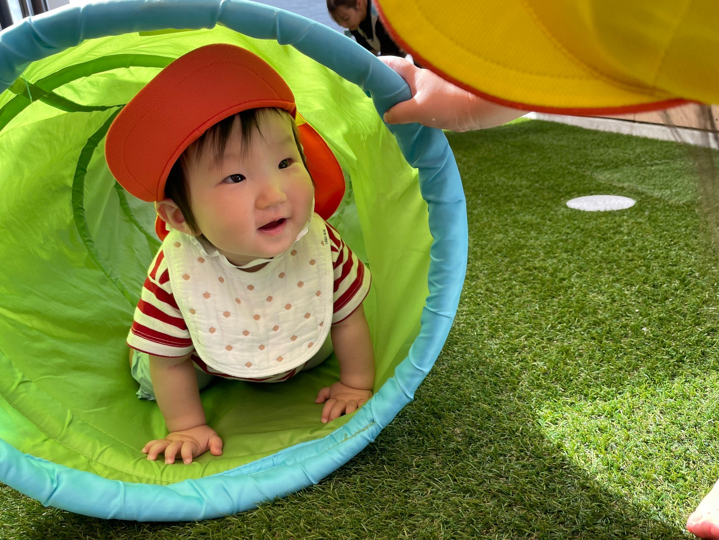滑り台やトンネルを楽しんでいると‥地震のサイレンが鳴りました💦