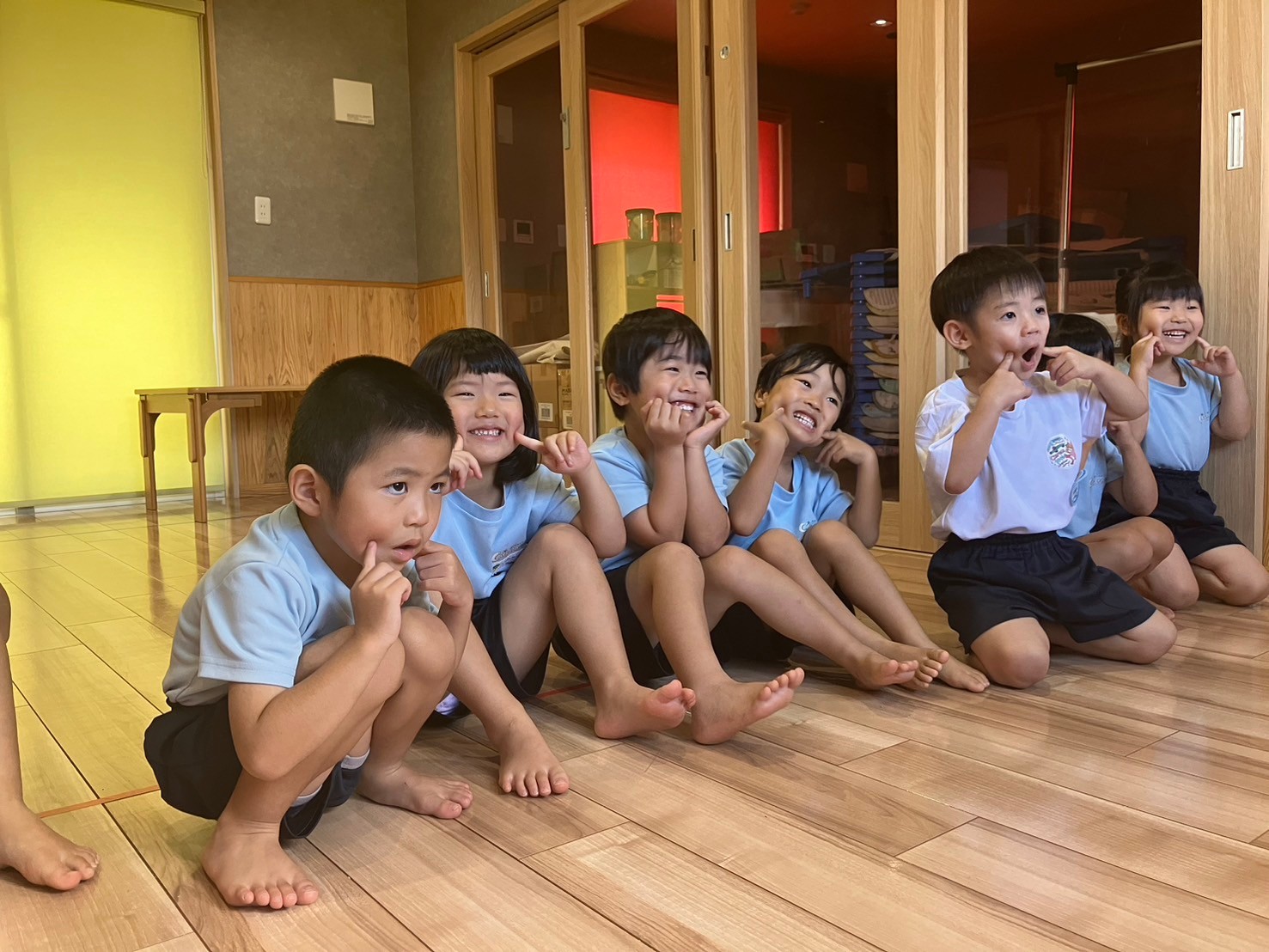 「happy」や「angry」「surprise」等、感情を表す英語を習うとともに、表情も付けながら英語のリピートを楽しみました🥰