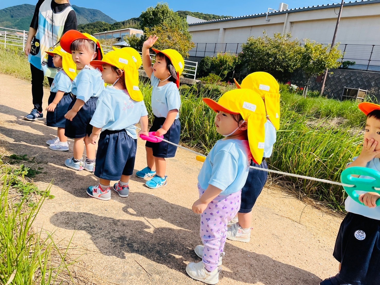 赤とんぼやお魚、ちょうど稲刈りをしていたコンバインも見つけ少し観察してみましたよ🙌反対側に行く際、草が落ちていくのを見つけて報告してくれました🤭色々見つけては「せんせーい!」と教えてくれるりす組さんでした🥺🤍