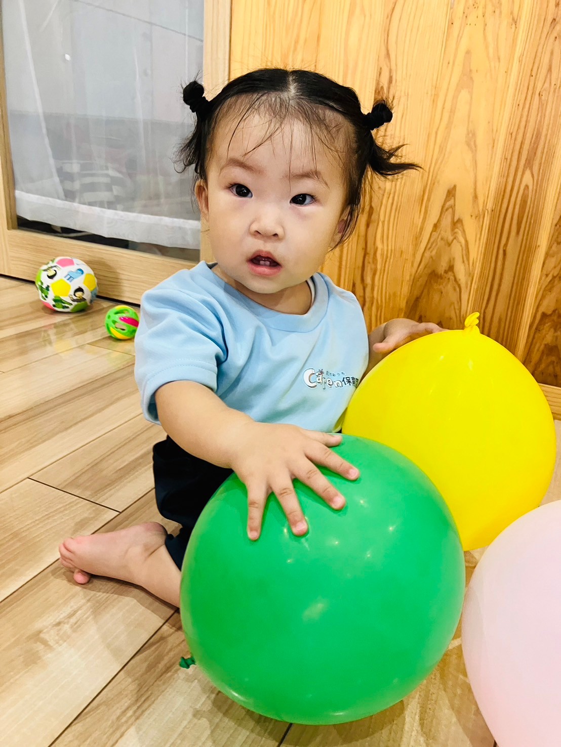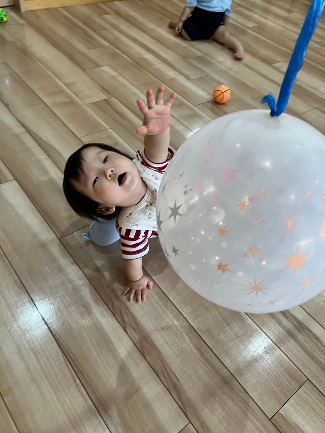 ひよこぐみさん新しいお友達が入ってきてにぎやかになりました🤗今日は、風船🎈遊びをしましたよ🎶風船を触っておいかけたり吊るした風船に手を伸ばして跳ね返りを楽しんでいましたよ☺️✨