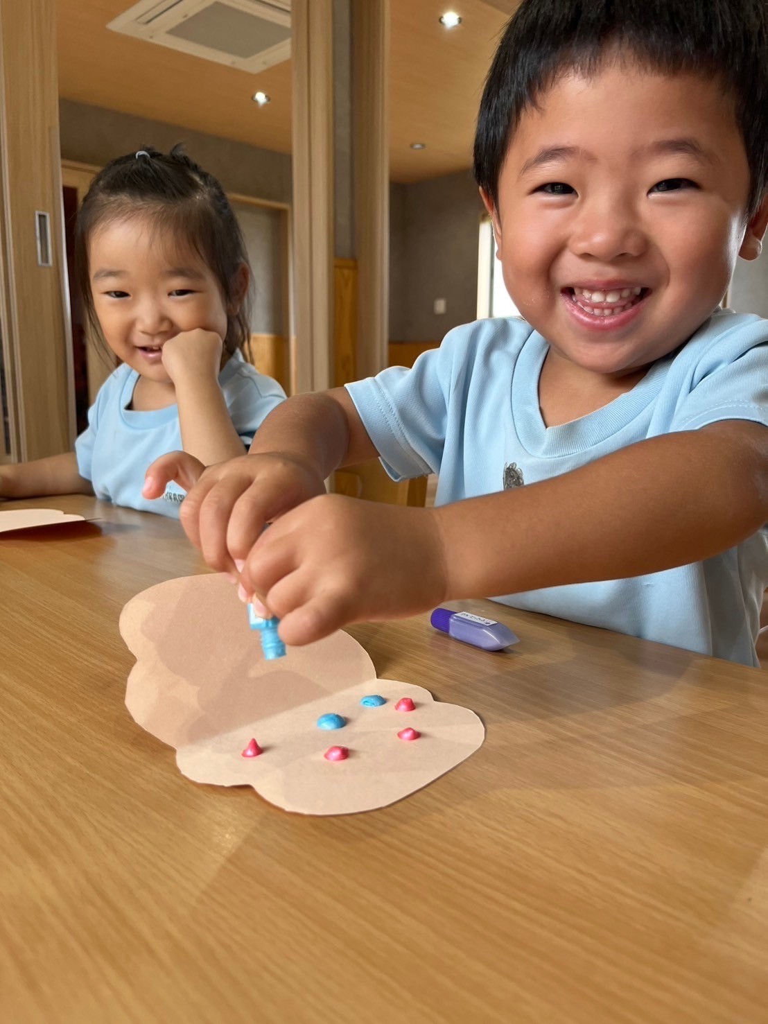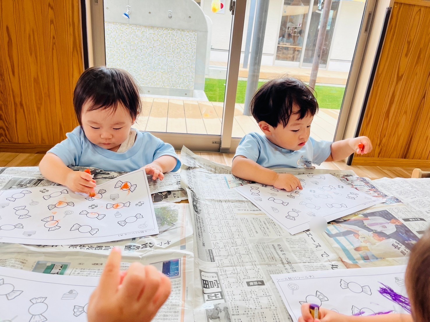 じのじのと塗り絵をした後シールを貼りましたよ!最初は丸の中に上手くシールを貼ることができなかったりす組さんでしたが今回は丸の中にシールを貼れて嬉しそうに教えてくれました👏✨