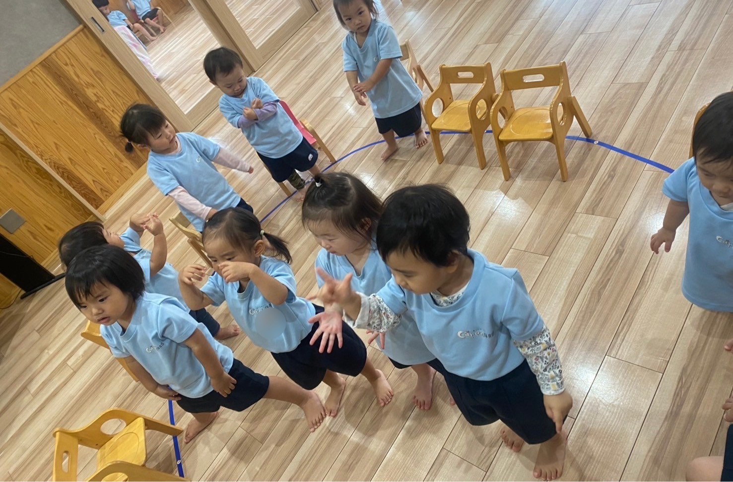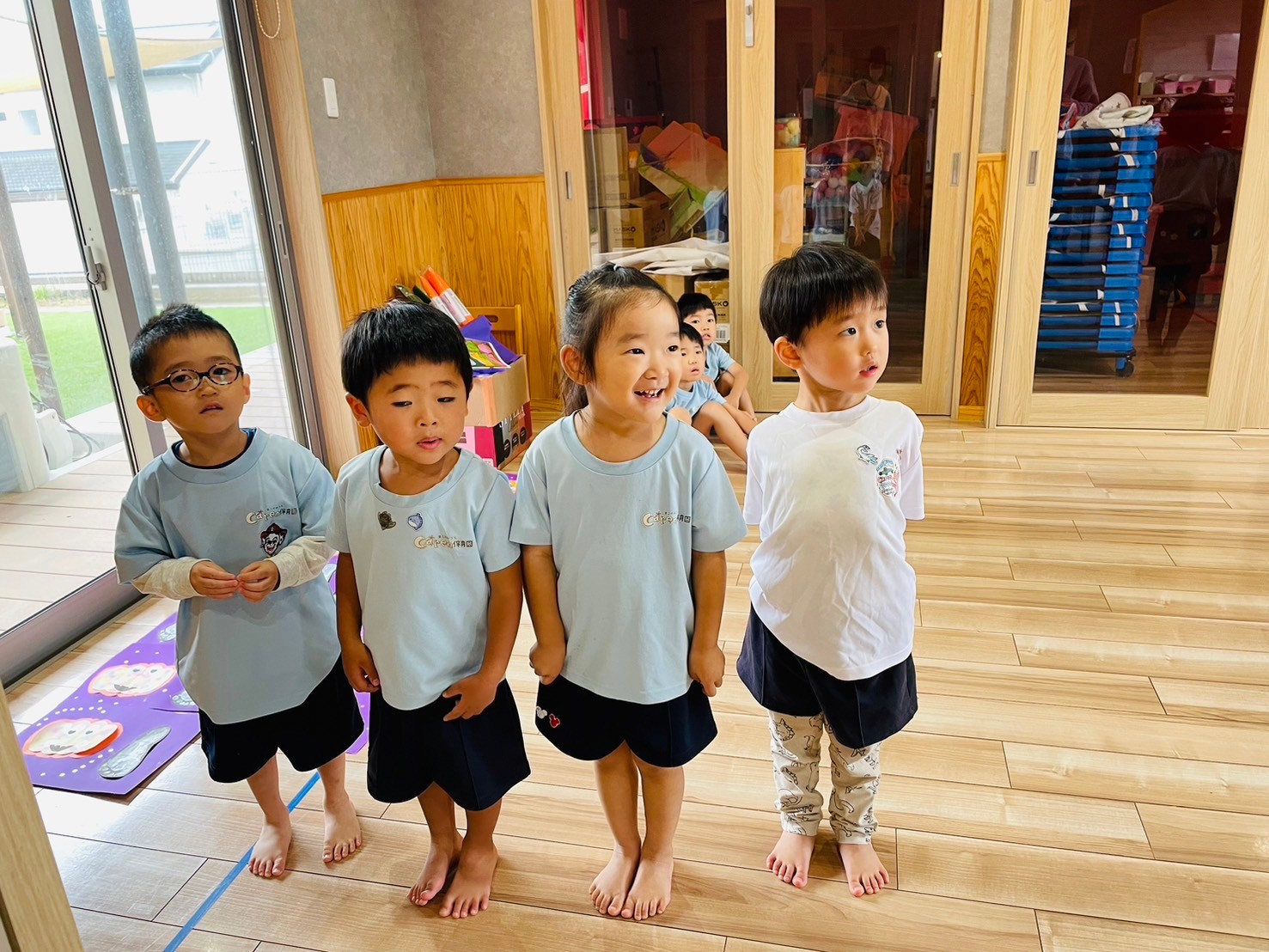 今日は朝の会から元気いっぱいの子どもたち!円になり自分の前のマークからどんどん前に出て先生の前で大きな声で歌を歌ってくれました😂💖その後は力強く
