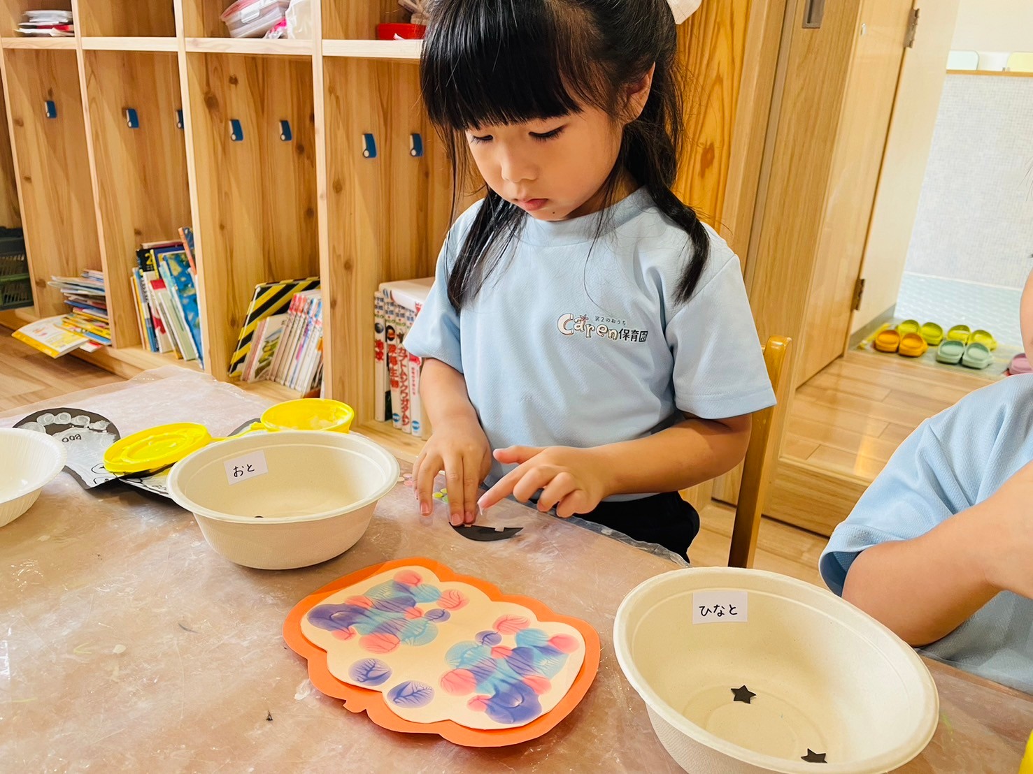 のりを使ってかぼちゃの目や口を張ったり、台紙に貼り付ける作業をしましたよ🥰それぞれの個性が溢れる可愛い作品に仕上がりました❤️