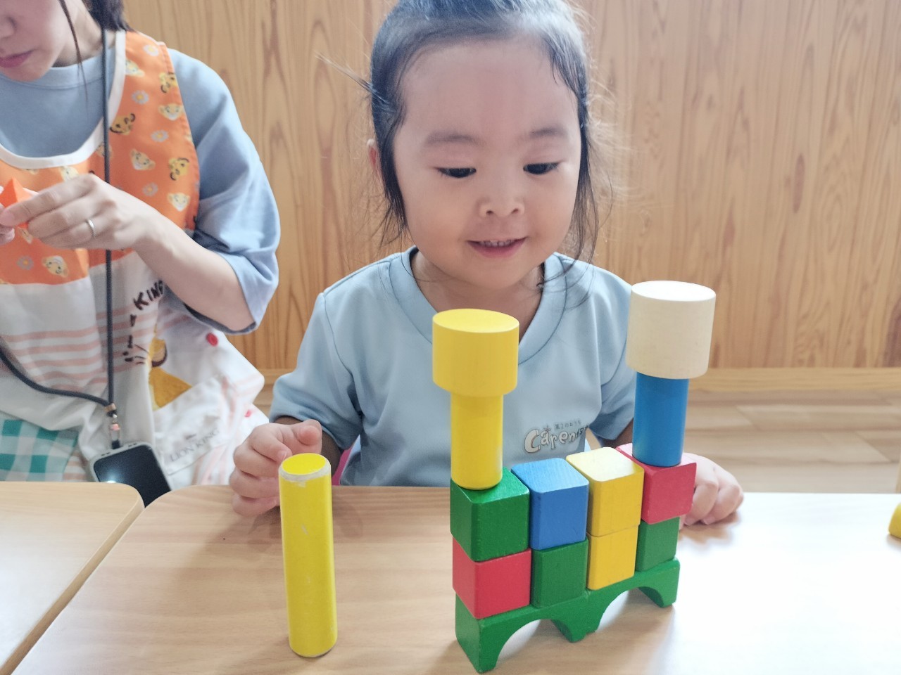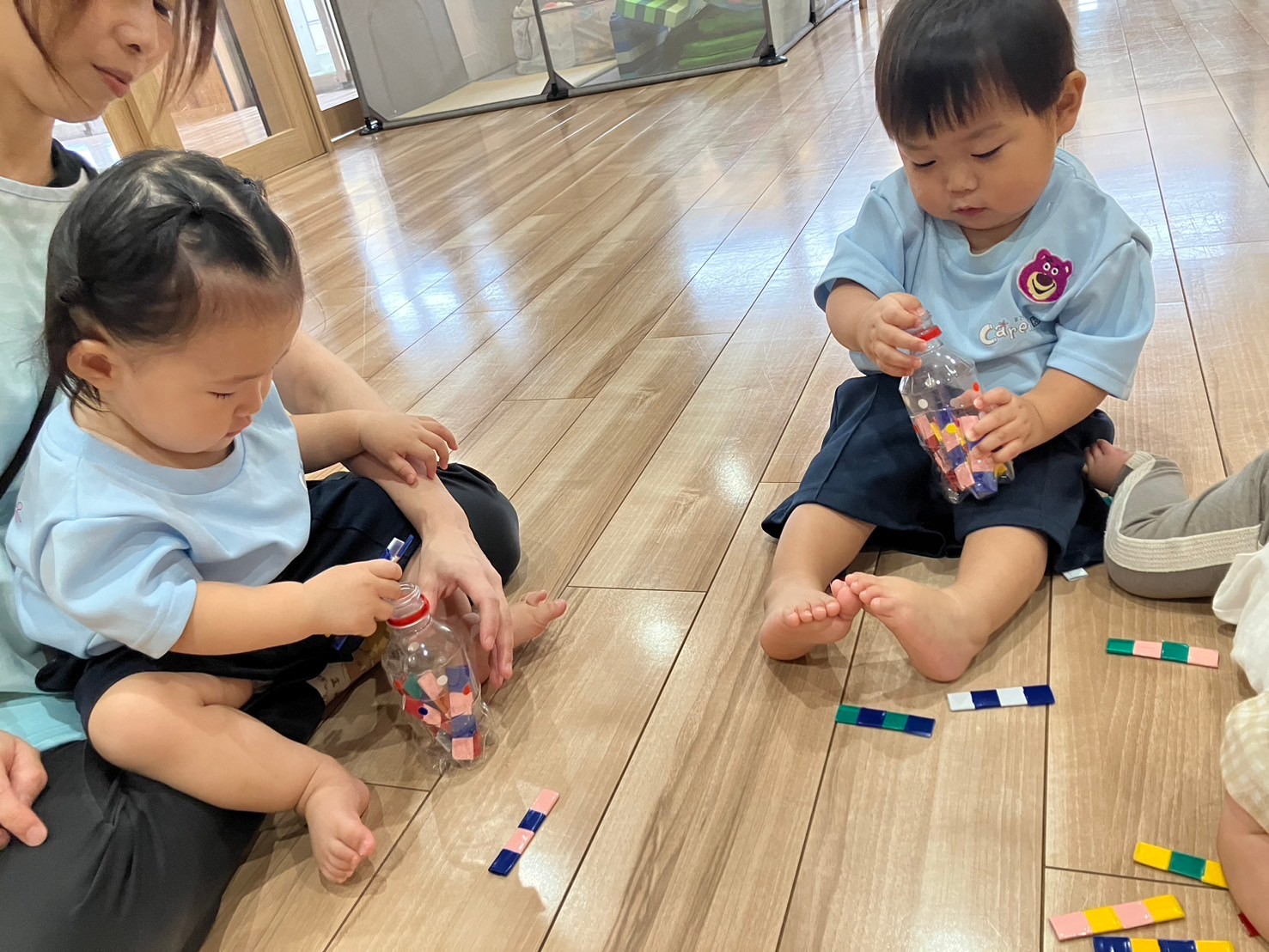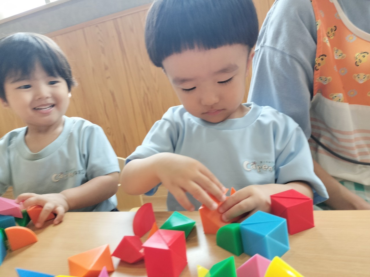 風船🎈遊びの後は机に座って、IQブロックや積み木で遊び、積み木を積み上げて倒れるのを楽しんだりIQブロックをくっつけていろいろな物を作りながら楽しむ事ができました✌うさぎ、こあら、きりん組