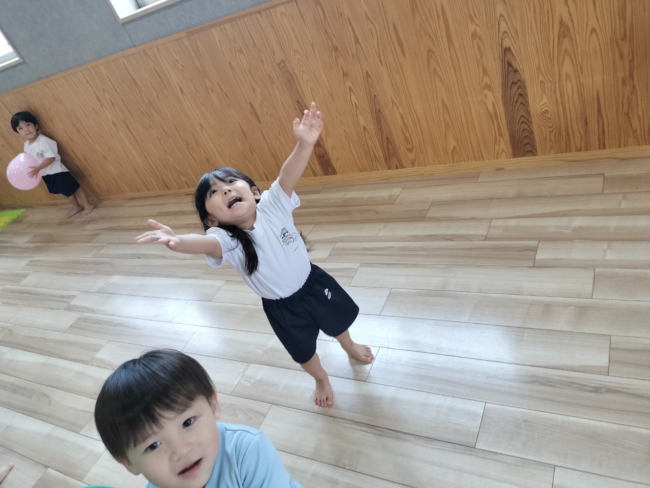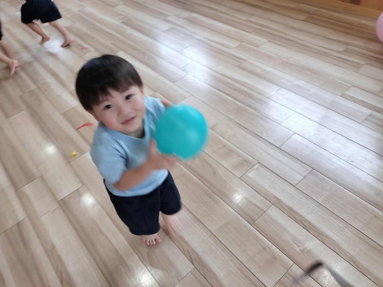 今日も連日の雨☔️だったので、お部屋で風船🎈で遊びました。遊んでいる途中、風船🎈がバーンとわれるとみんなで『びっくりしたね😵』と語り合っていたぱんだ🐼ぐみさん😂上に飛ばさしたり、サッカーの様にキックしながら沢山動き回って楽しく遊んでいましたよ👍