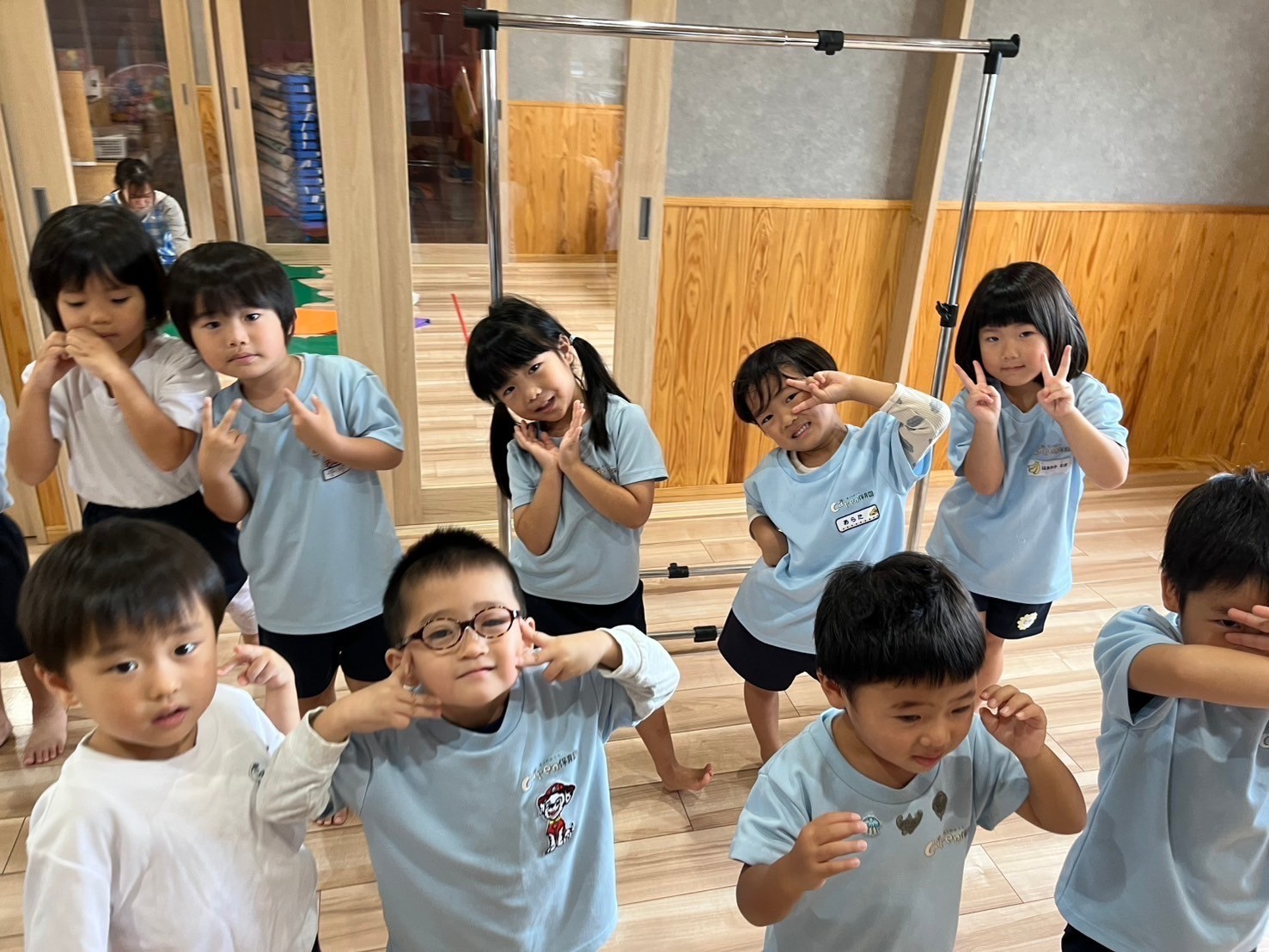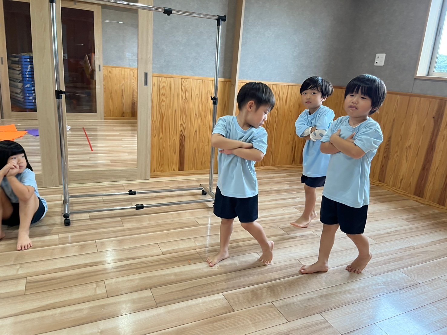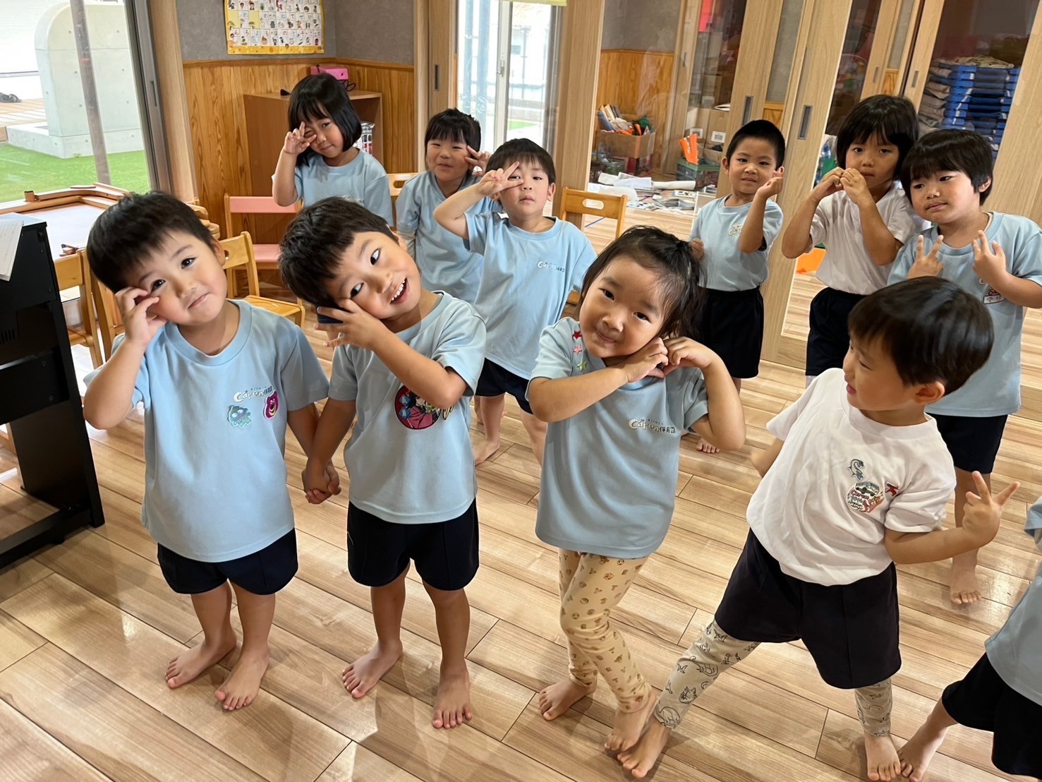 雨でも朝から元気いっぱいのひよこさん♡体操からスタートしましたよ🎶身体をフリフリしていましたよ🤗
