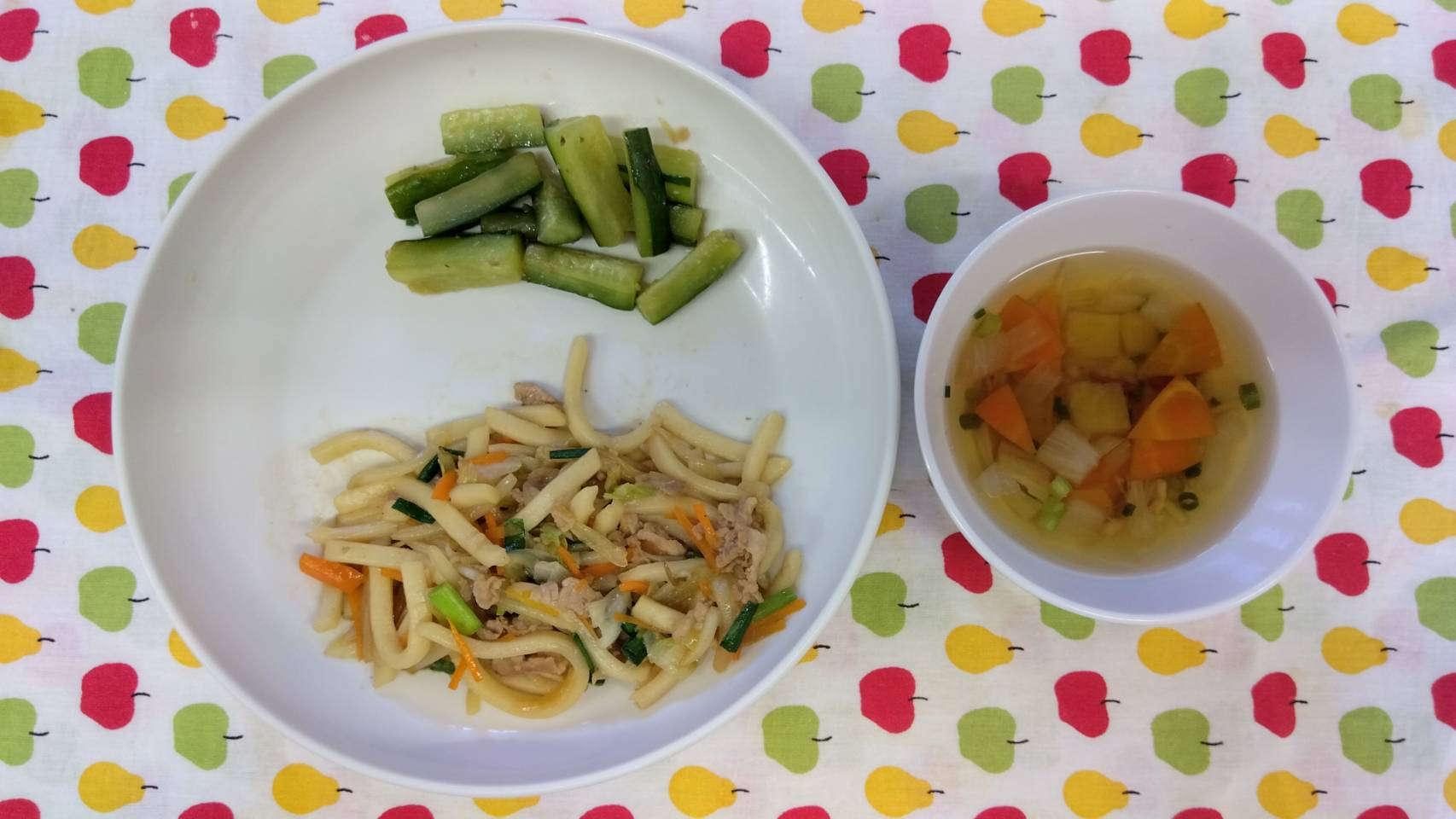 少しずつセリフを覚えてきたお友達も増えてきて、難しいところは何度も何度も繰り返しながら一生懸命練習しましたよ☺️✨💪🏻【くりえいと園の今日の給食です】