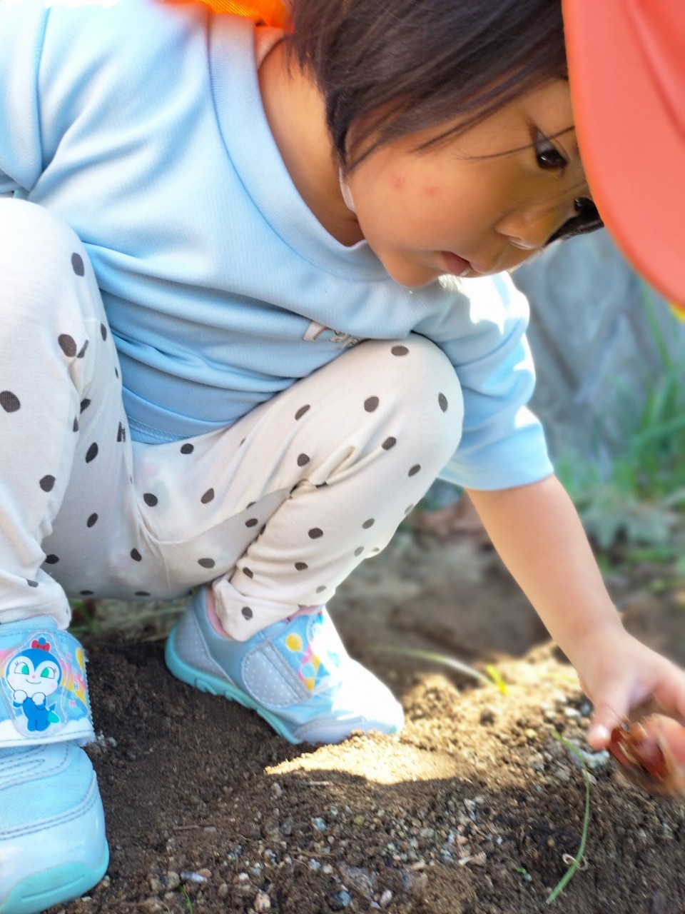 途中でチュウリップ🌷の球根も植えて、最後に『大きくなっってね』とおまじないもかけました😄みんなでダンゴムシを見つけたり、どんぐりを探したり、きのこ🍄🟫もみつけ、葉っぱやお花を一生懸命に食べている大きな青虫🐛も見つけることができ夢中で真剣にみていたぱんだ組さん(happy face)最後は階段を登って帰ってきたりと今日はたくさん秋を見つけれたお散歩になりました♪。うさぎ、こあら、きりん組