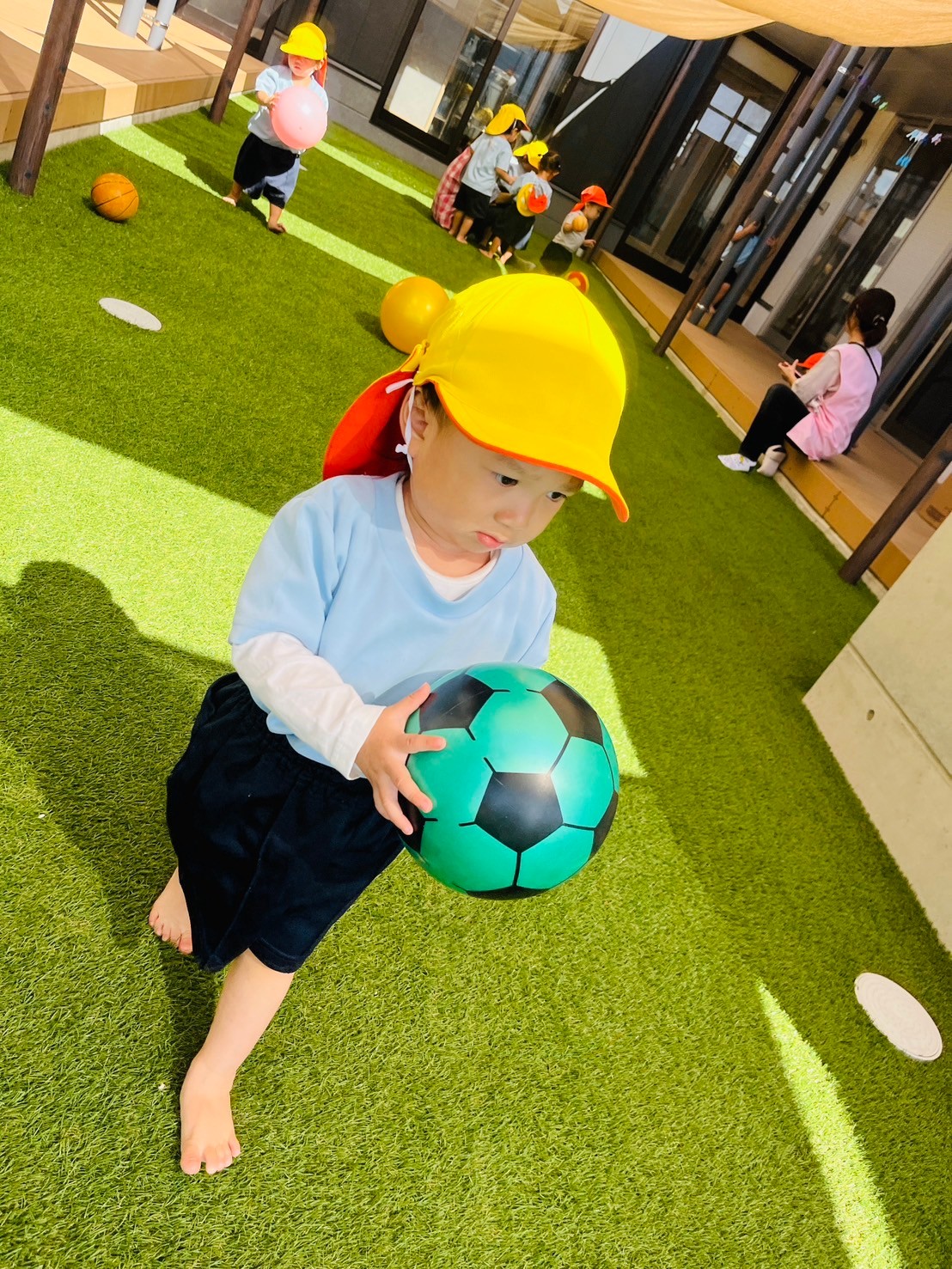 その後、園庭に出てボールやシャボン玉で遊びました💕