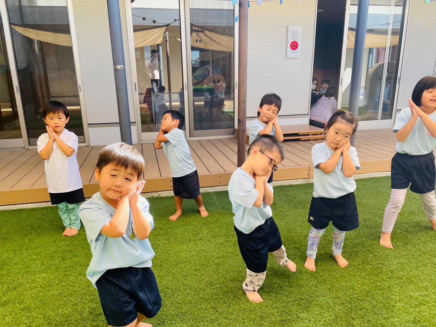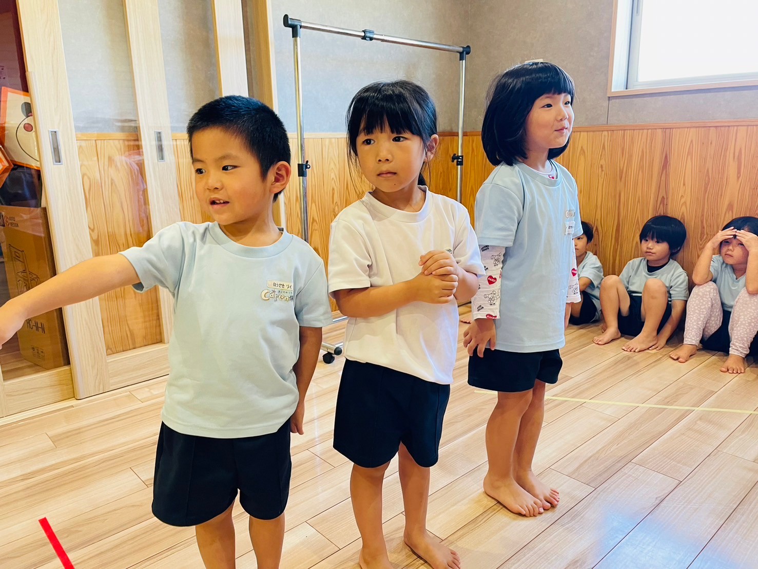 最初ゆっくり振り付けを確認しながら練習し、それから実際の速さで練習すると「はやすぎるー😆!!」と言いながらもニコニコで大きな掛け声を出しながら楽しく踊る姿が見られました😌💕