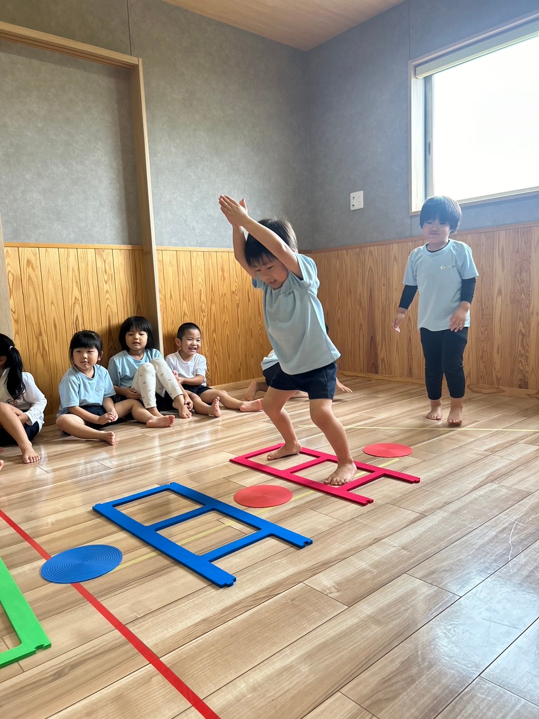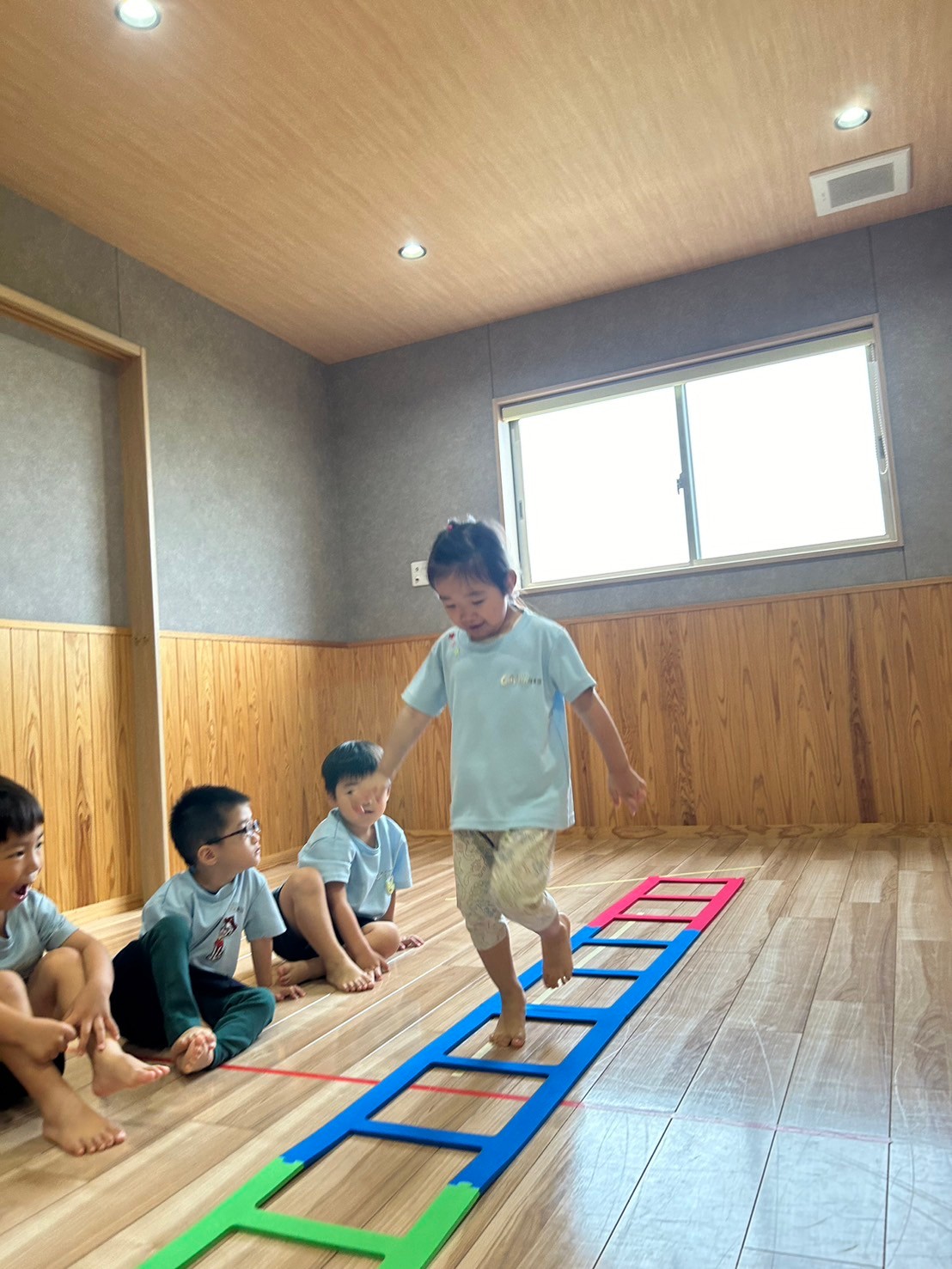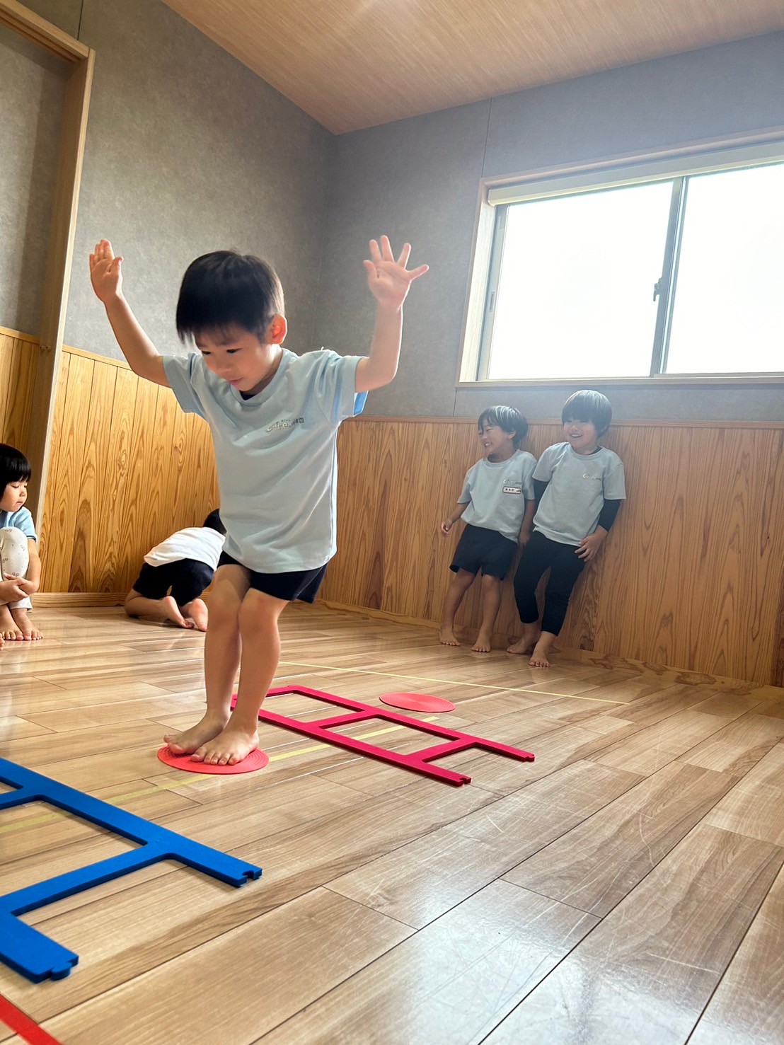 今日は体操教室に参加しました🤸走る練習ということで、ラダーを踏まないように小走りをしたり、グーパージャンプをしましたよ😁