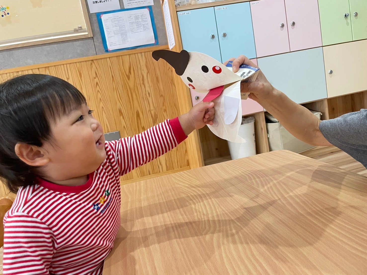 今日はおばけ👻と一緒に朝の名前呼びをしましたよ🎶元気いっぱいに手をあげてお化けちゃんとハイタッチ🙌