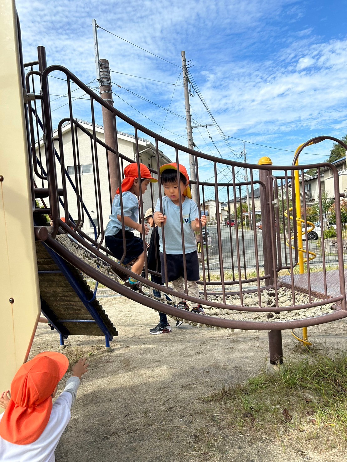 その後遊具に移動して、スプリング遊具や滑り台、虫さがしもしてたくさん遊びました🌈うさぎ、こあら、きりん組