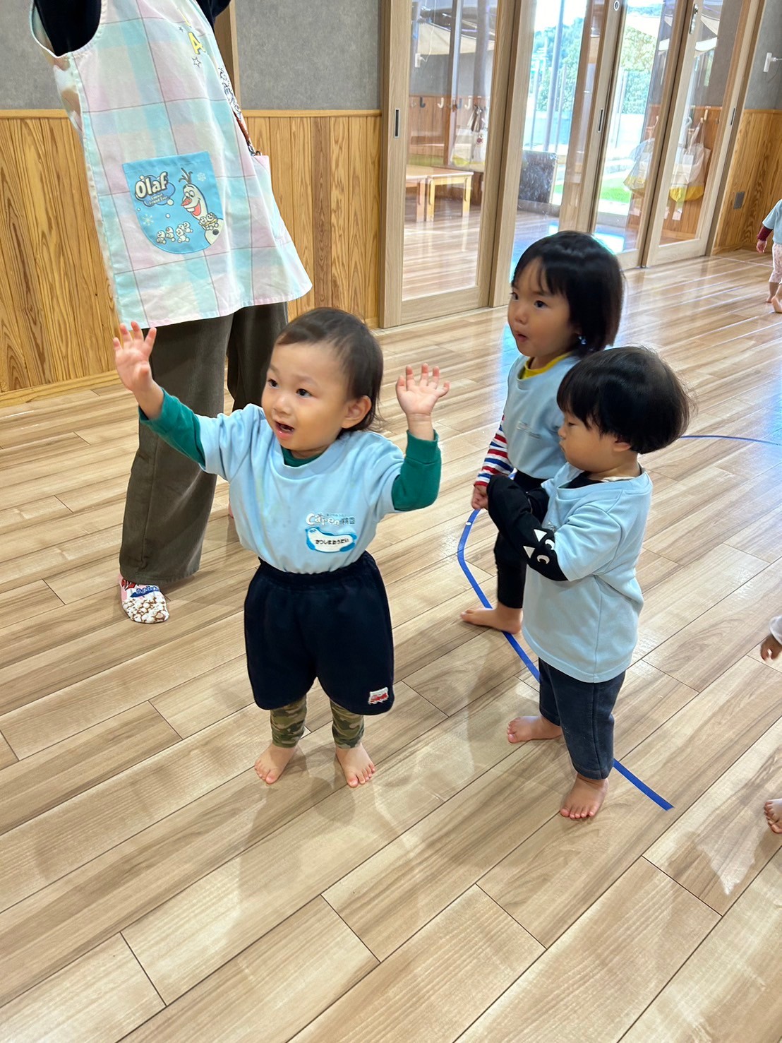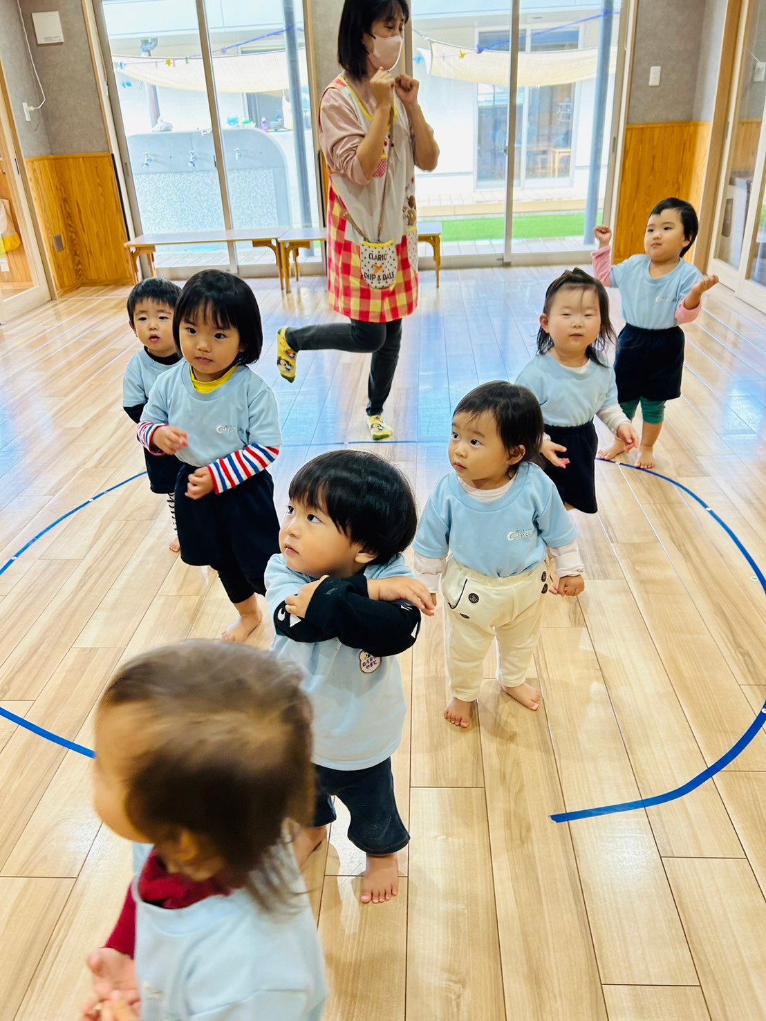 先生たちをみて「どーん!どーん!」「とんとんぱっ」と掛け声を出しながら踊ることが出来ました🥰
