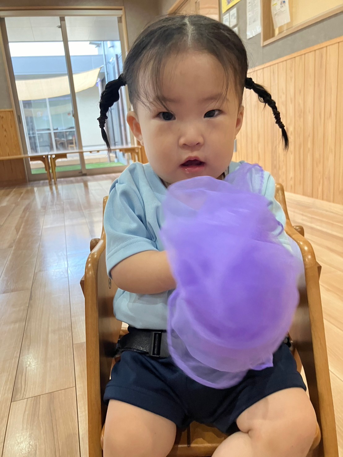 今日は楽器遊びをしていきました🥰楽器を触ったり音が出ることを楽しんでいたひよこぐみさんでした💕リトミックスカーフ🧣や楽器を使っておもちゃのチャチャチャやまつぼっくりの音楽に合わせて合奏を楽しんでいましたよ♡