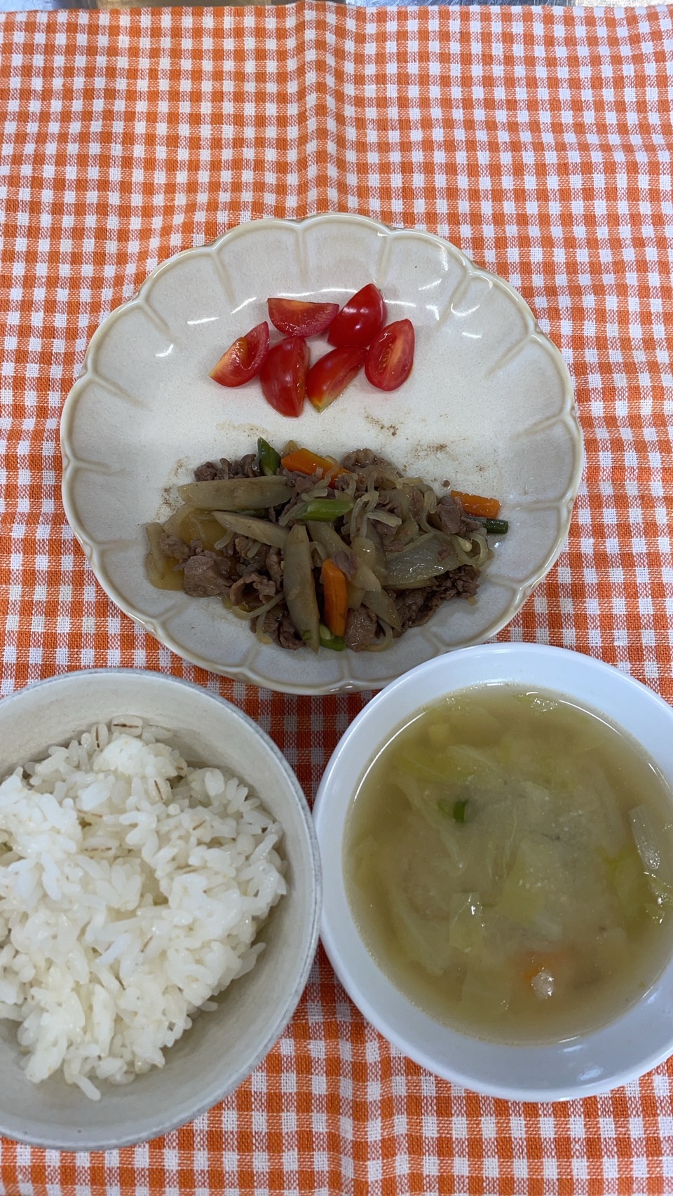 写真は衣装を着ていなかったナレーターさんと給食の写真です☺️【くりえいと園の今日の給食です】