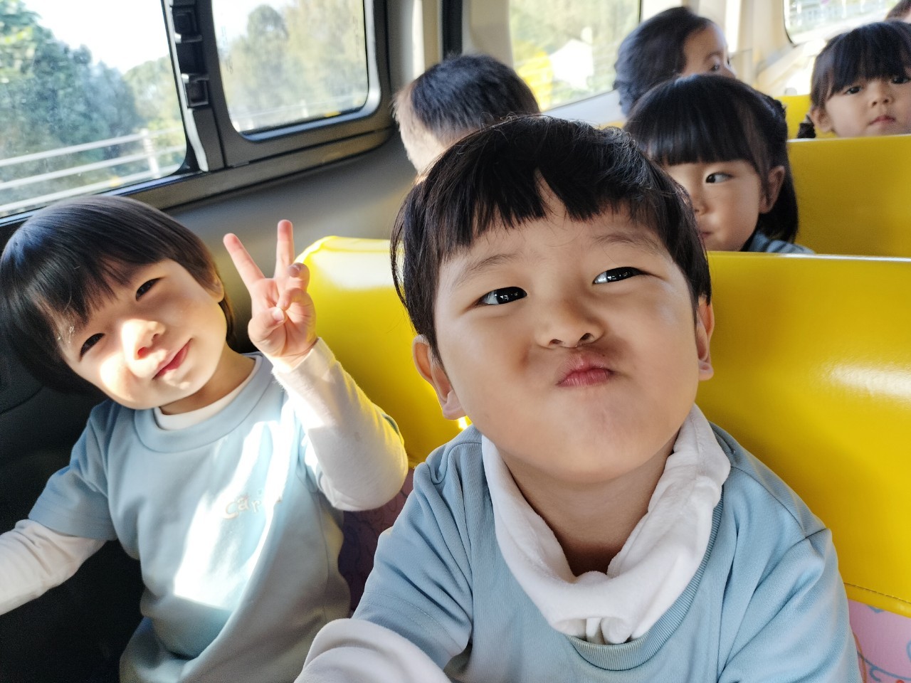 帰りのバスでは「発表会まであと少し?緊張する🥹」と言うきりん組さん。