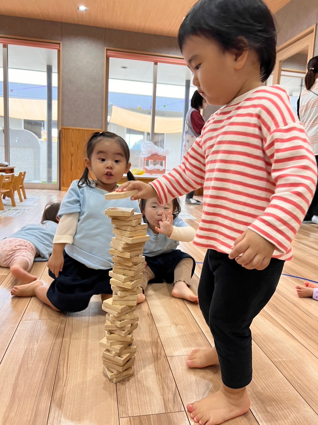 倒れそうになるまで高く積むことができて大盛り上がりでした🥳🌼ぱんだ🐼ぐみ