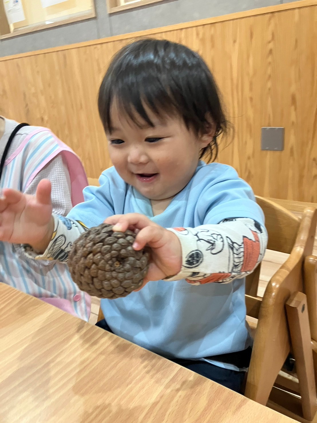 はりきって♪やきいもや♪まつぼっくりを歌っていき本物のまつぼっくりを持って嬉しそうでした🤗