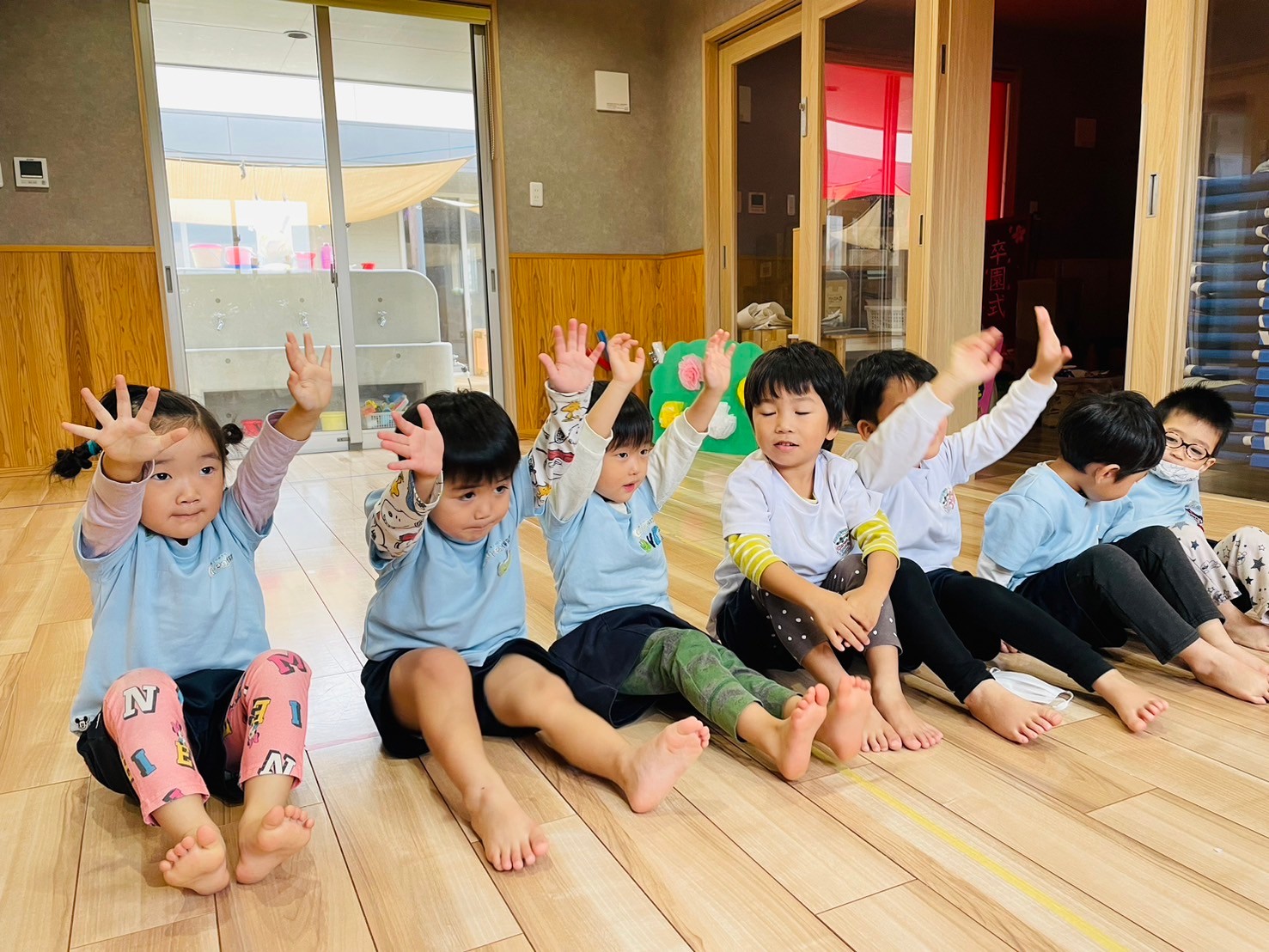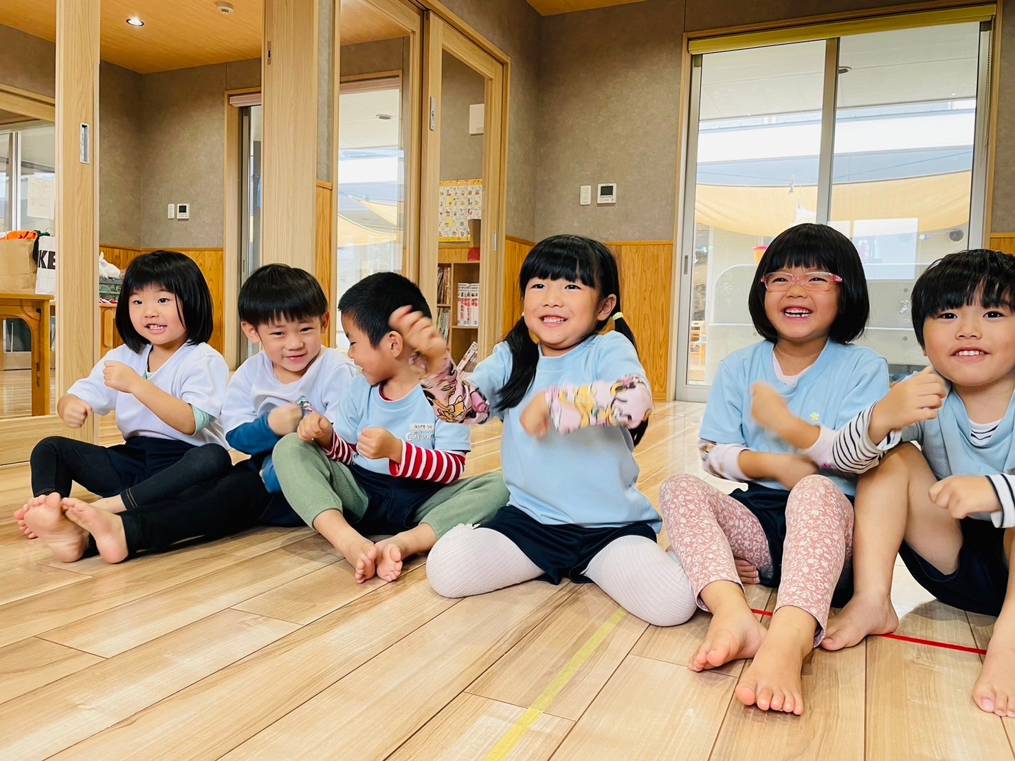 次に、できるかな?の本に合わせて体を動かしたりダンスをしました!決めポーズもかわいく決まっていましたよ🩷