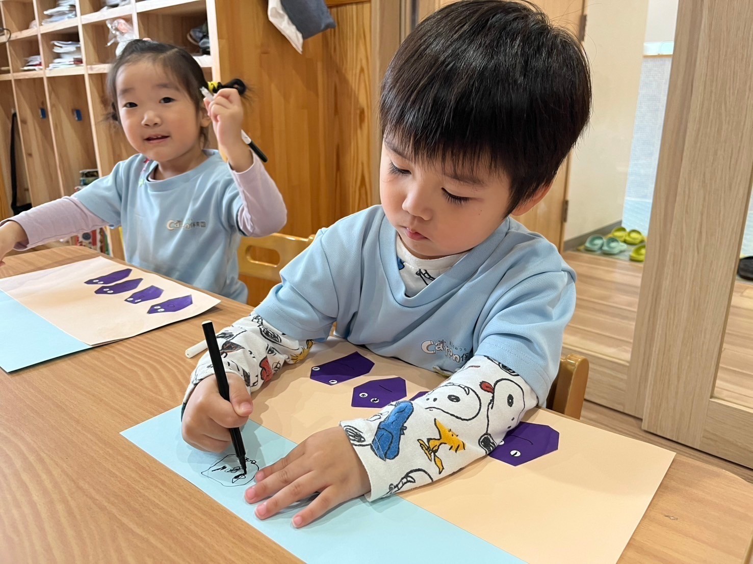 芋掘りの日を思い出しながら、周りに自分の絵を描いたり、お友達を描いたり思い思いの絵を描いて可愛い製作ができあがりましたよ❤️【くりえいと園の今日の給食です】