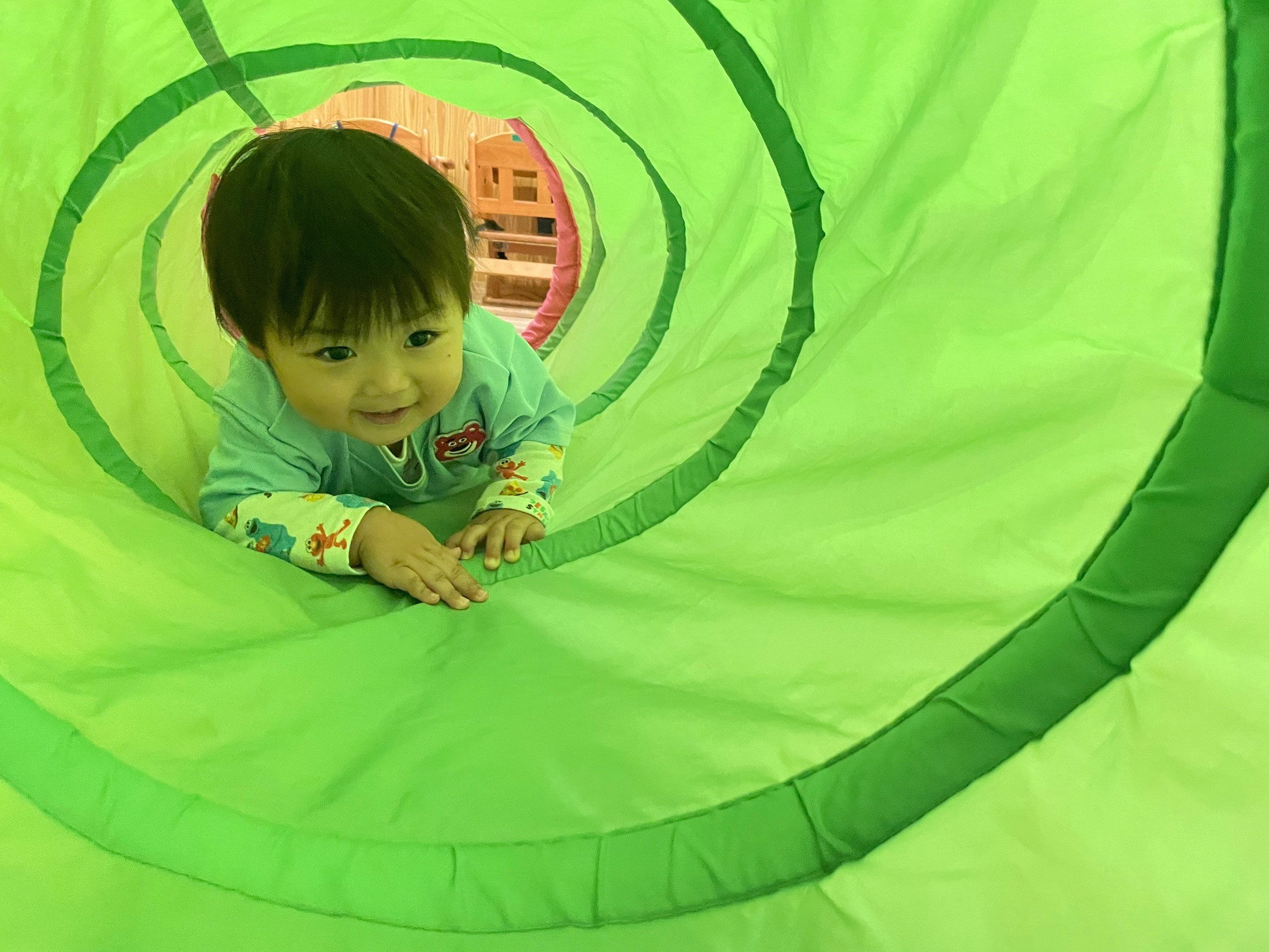 トンネルも勇気を出して進み、出口まで来ると、次はお友達が来るのをワクワクした様子で待っていましたよ😍