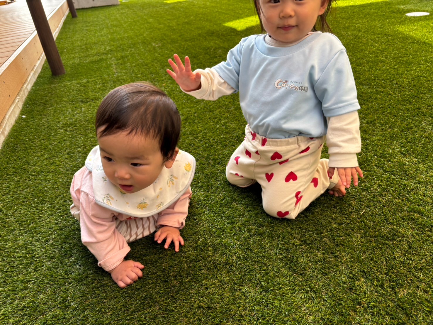 その後は園庭に行きお砂場で遊びました!途中以上児さんが発表会の練習をしていたので少し見学したりりす組さんも披露してみたりと戸外遊びも楽しみました😊💖ぱんだ🐼組