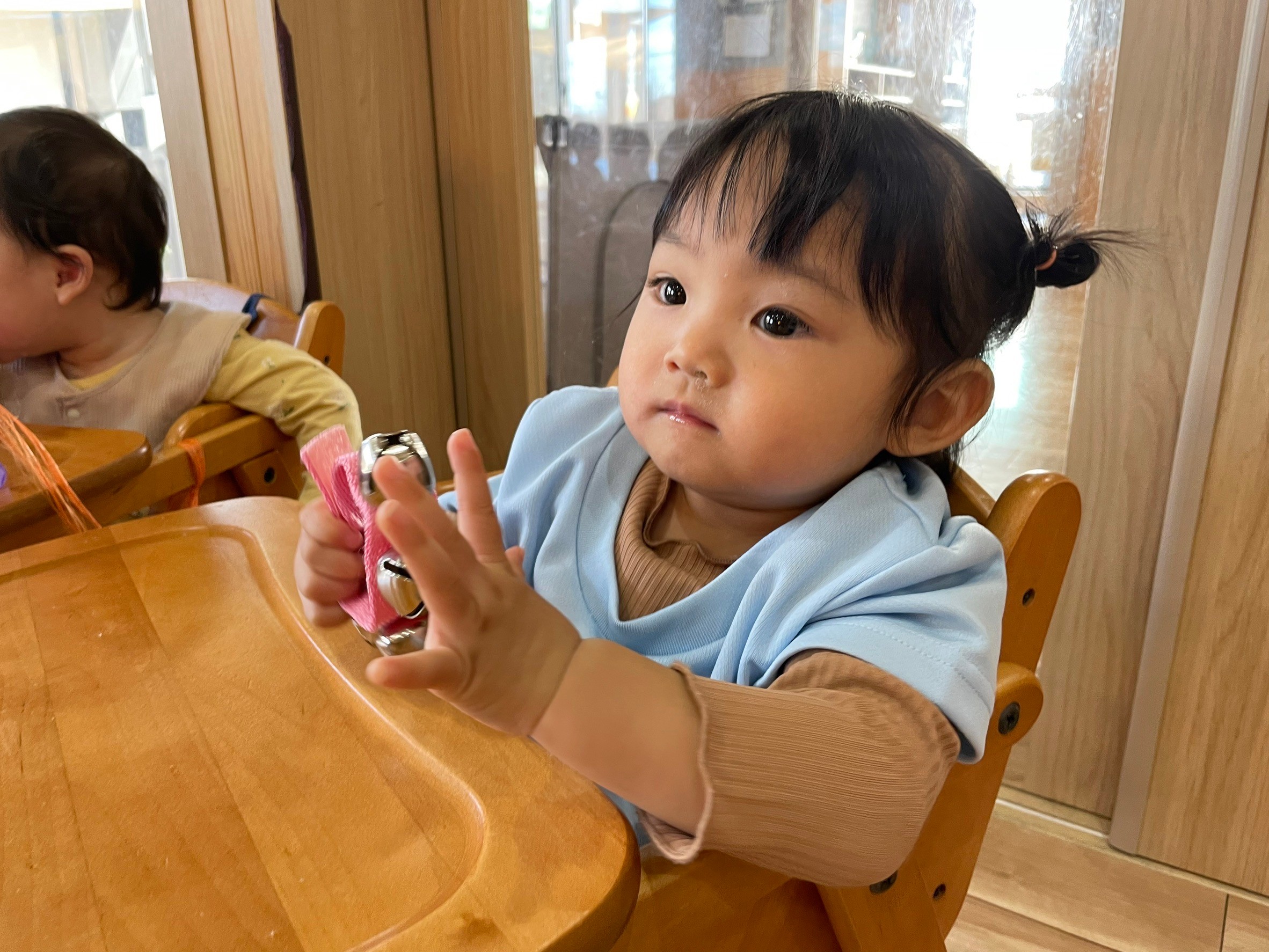 好きな色の鈴🛎️を貰いクリスマスソング🎵を奏でました。好きな色🩷🩵もきちんと言えましたよ😍