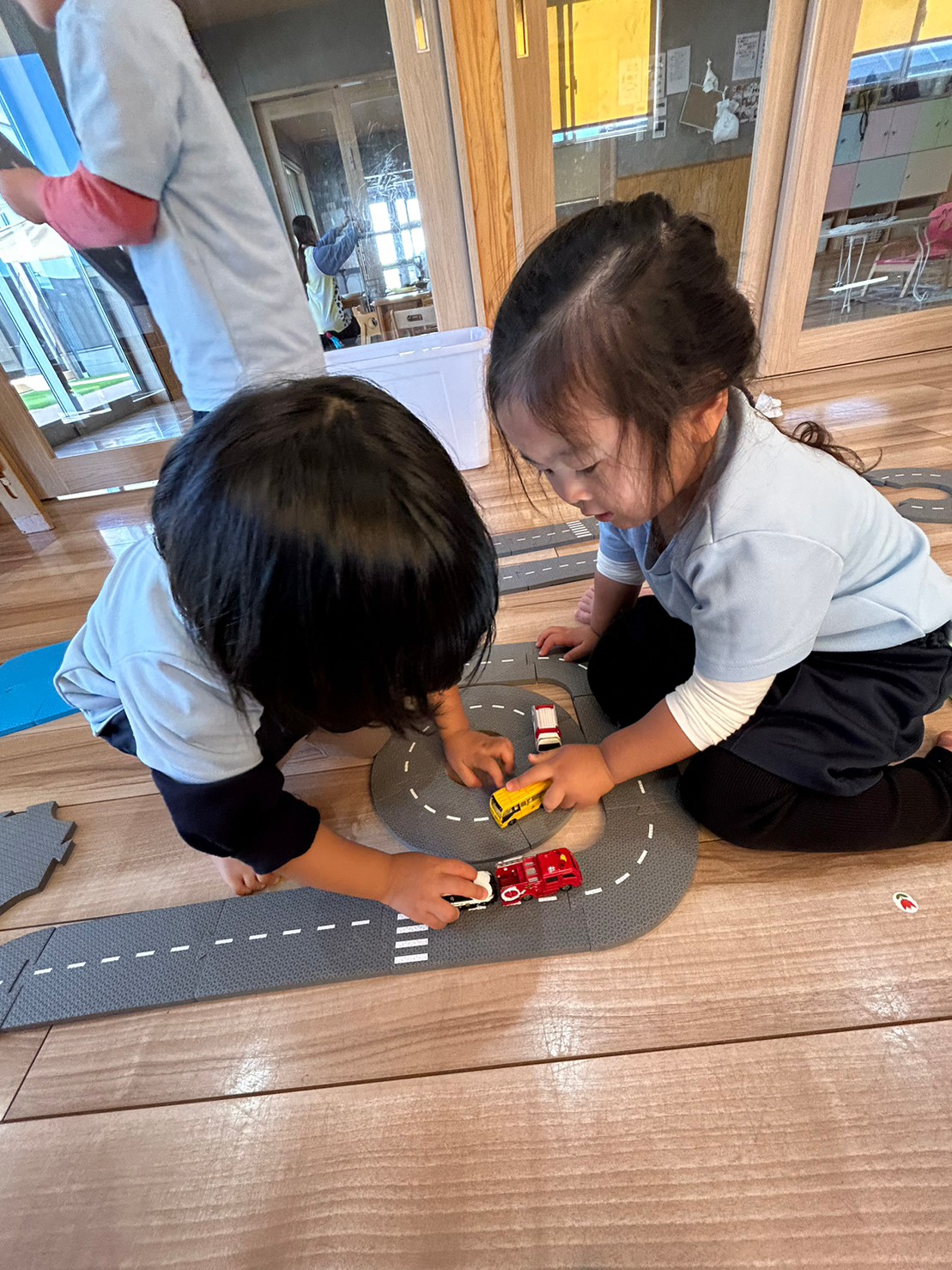 皆んなで道路を繋げてながーく伸ばして、好きな車🚗を思い思いに走らせました。久しぶりだったのでじっくり楽しむことができたようです🥰うさぎ、こあら、きりん組