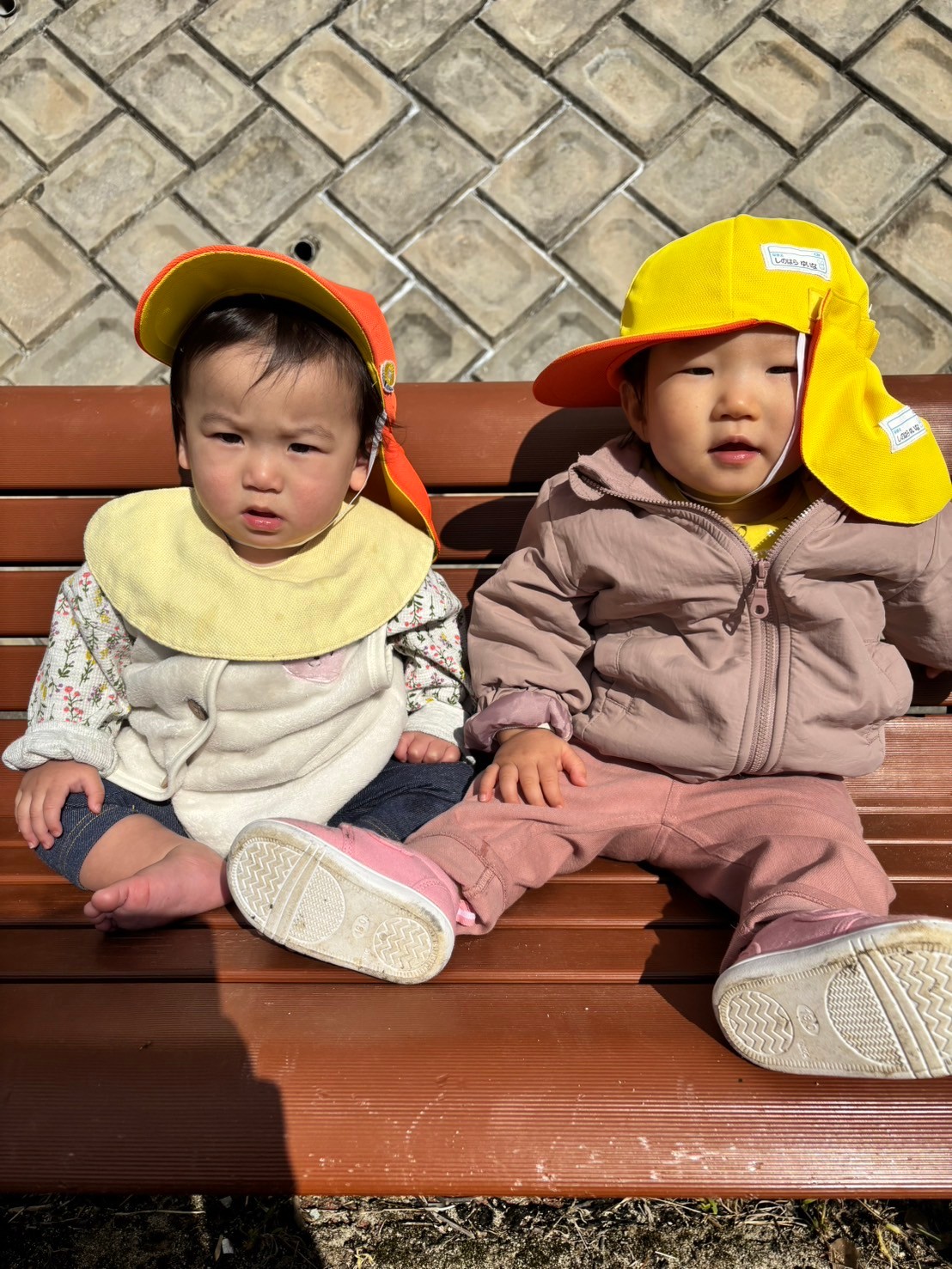 公園についてからは、あちこち移動したりお友達とベンチに座って日向ぼっこをして過ごしましたよ💕
