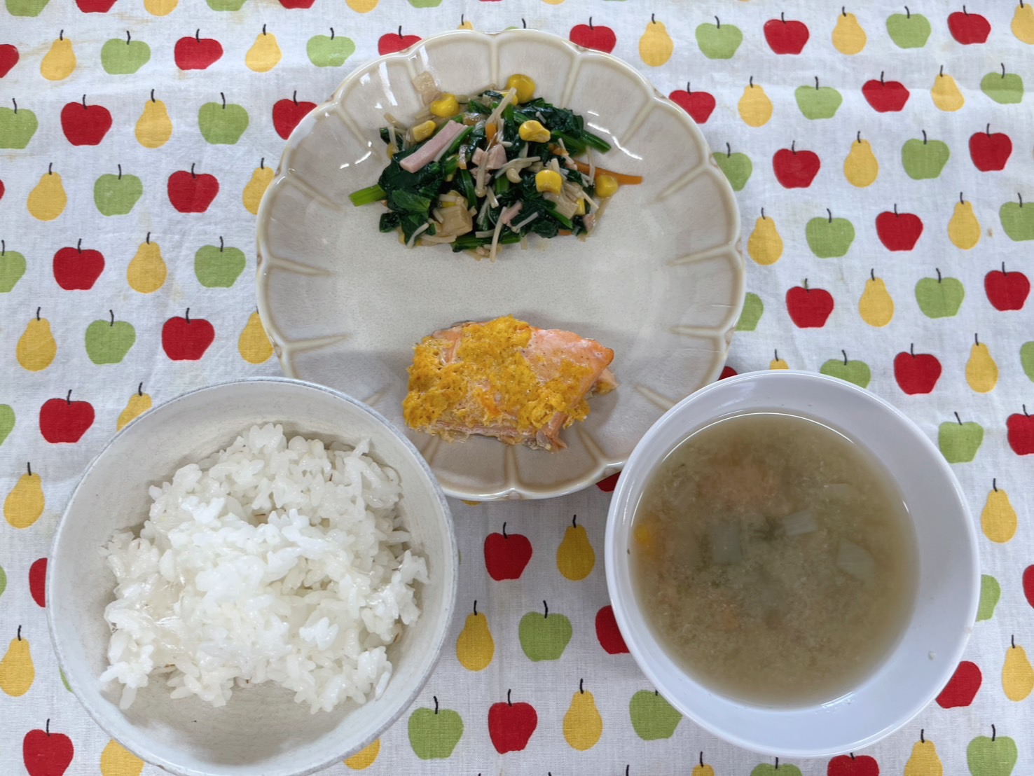 その後は園庭でボール遊びや鬼ごっこをして楽しみましたよ⭐️【くりえいと園の今日の給食です】