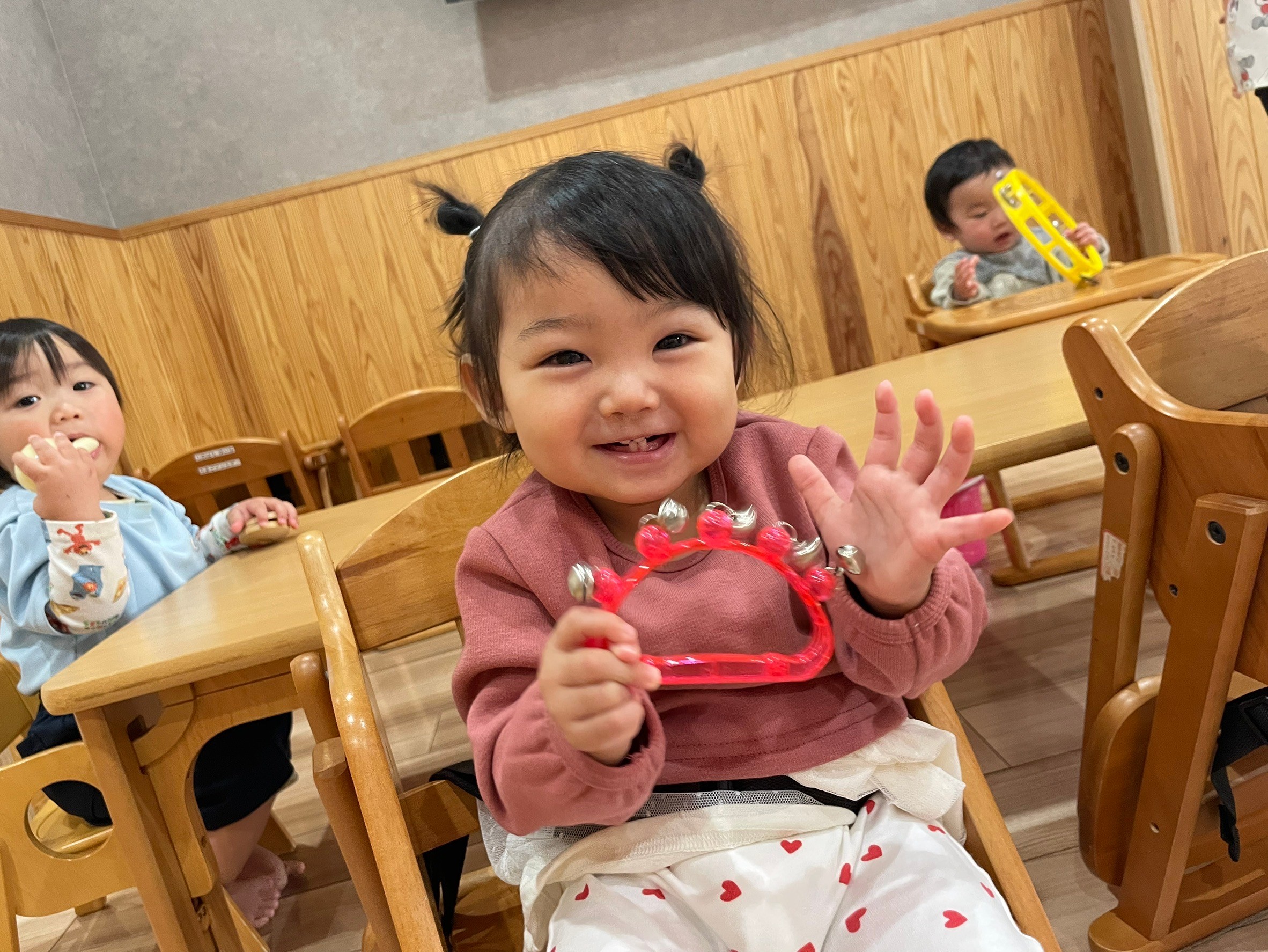 今日はタンブリンや鈴、マラカスを使って合奏をしました💕