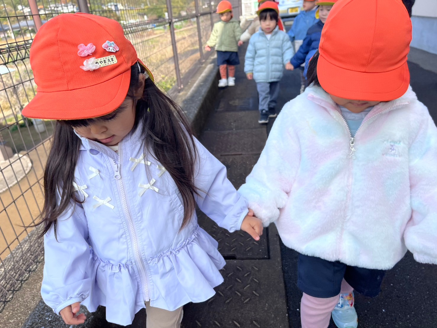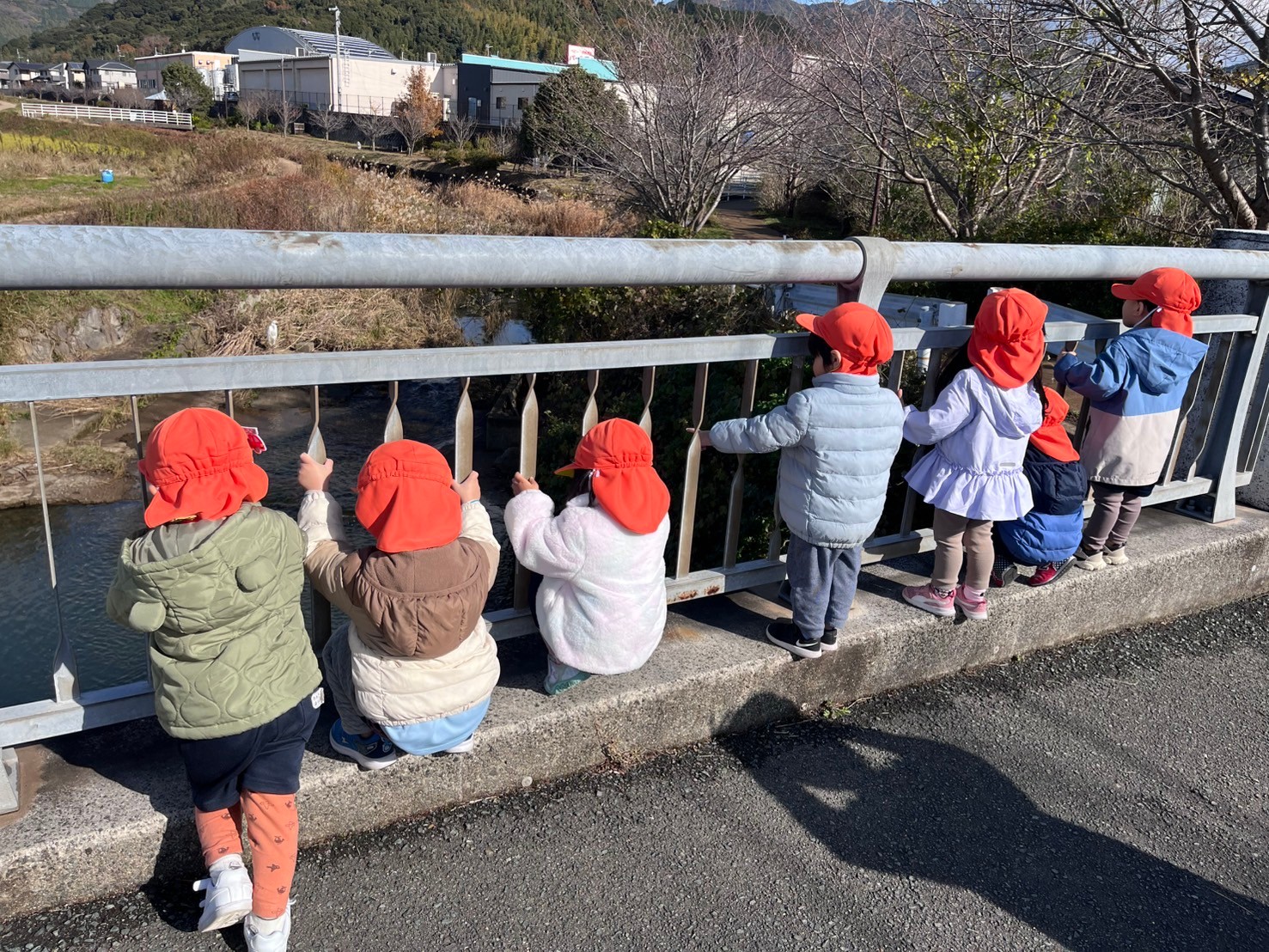 散歩に行く約束をしていたので、急いで準備して園周辺を散歩しに行きました🌈川の鯉に挨拶したり近くに白鷺がいるのを見て「大きいね」と言う子たち👀「公園行きたかったなー」と残念そうに言う子がいたので、次は公園に行く時間をとっていきたいと思います🤗うさぎ、こあら、きりんぐみ