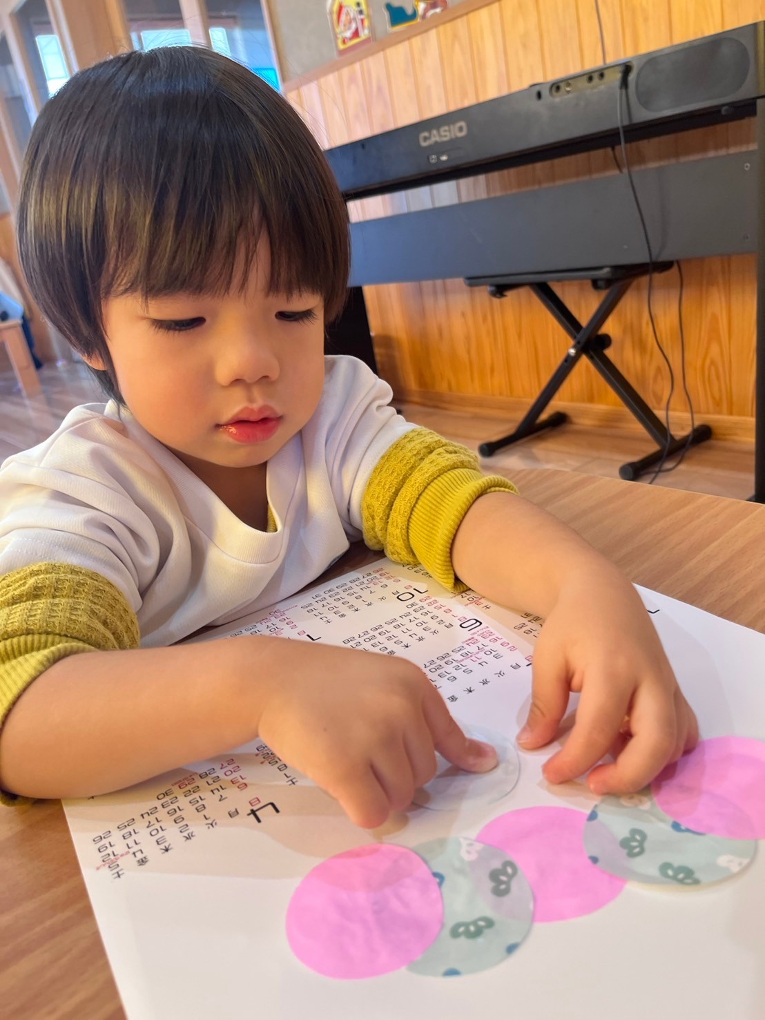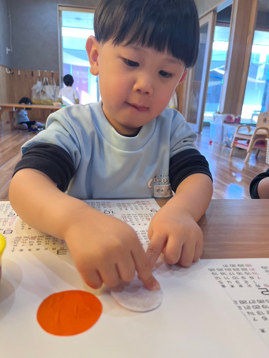 今日はカレンダー製作で、来年の干支の巳(へび)を折り紙で作っていきました🐍ピンク、きみどり、オレンジから1つ好きな色を選んで6枚の折り紙を自分たちで糊付け、画用紙に貼ることができました🎶次はへびの顔を描いてもらいたいと思います🫶🏻待っている間はおままごとで遊び、お弁当を作ったり、「せんせー、お買い物に行こうよ」と保育者を誘う子がいました🤭💕