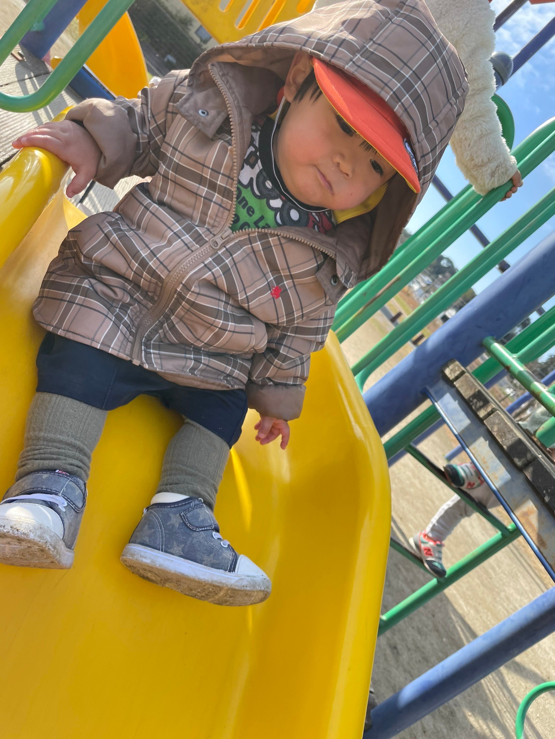 公園では、一生懸命に階段を上って滑り台を滑ったり、スプリング遊具に乗ったりしましたよ❤️
