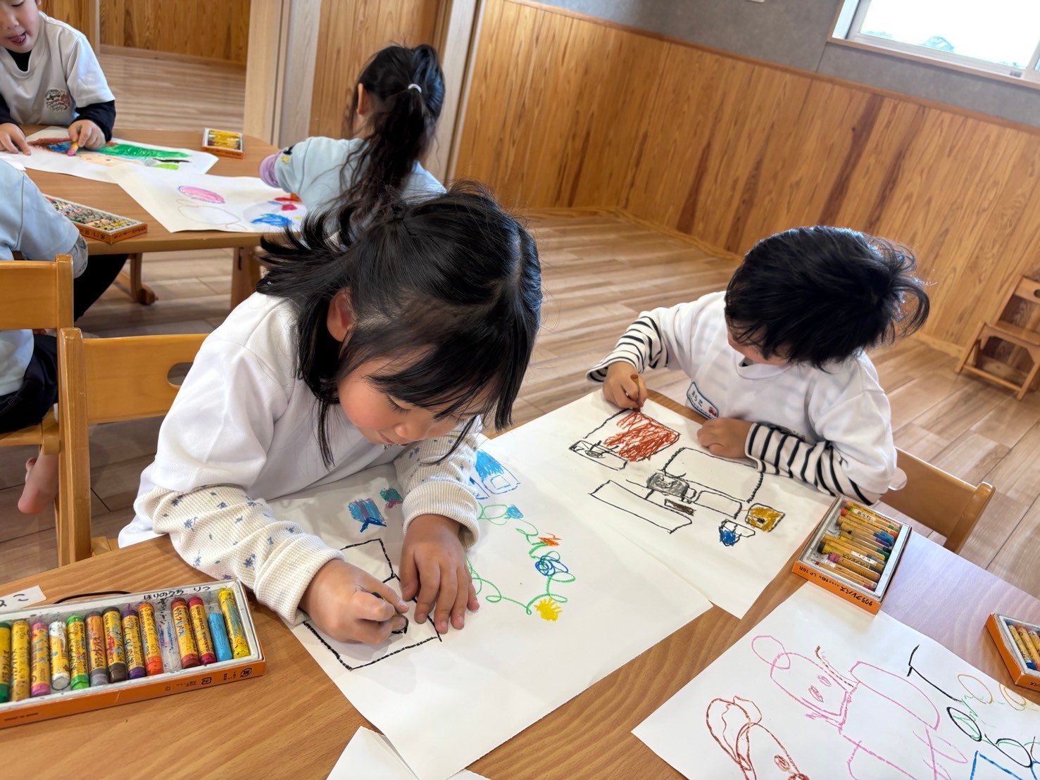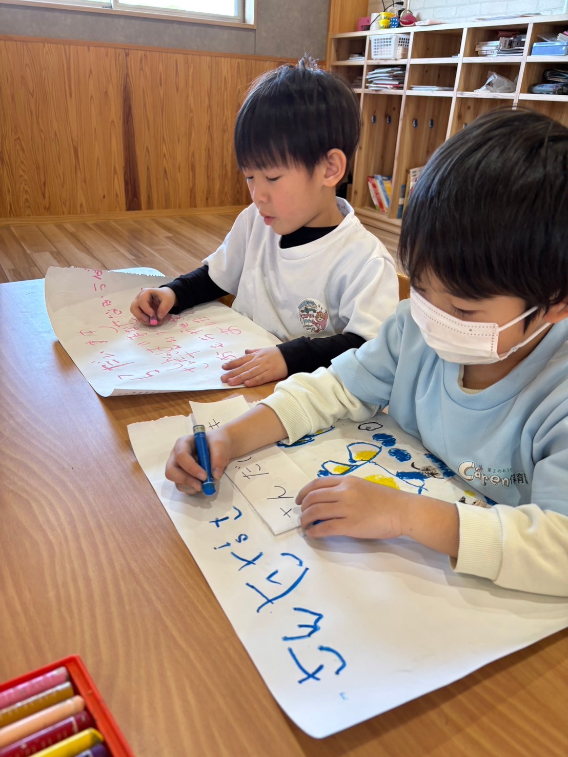 そして、その後は自由画を描いて楽しみ、クリスマスの思い出を描く子や、サンタさんにお礼のお手紙を書くお友達など、様々なお絵描きタイムとなりました😁🖍️