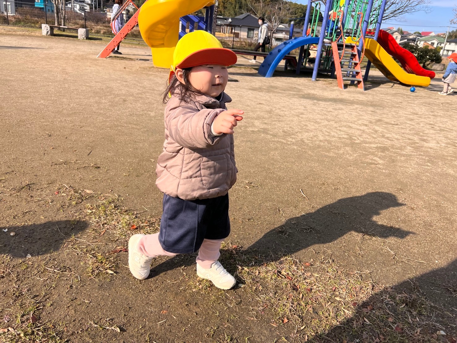 朝の会後はお天気が良かったのでひよこ組🐤さんとりす組さん🐿️と一緒にくりえいとふれあい公園までお散歩に行きました🚶♀️ 工事のショベルカーを見たり川にいた白鷺をみながら公園まで行きましたよ。