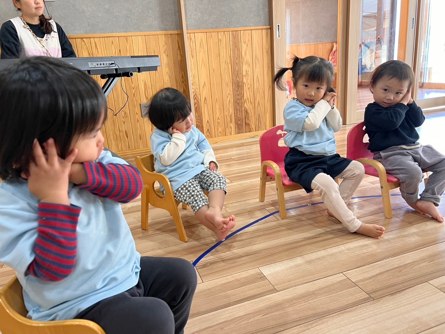 クリスマスソングを歌い、ニコニコ笑顔のひよこ組のお友達❤️