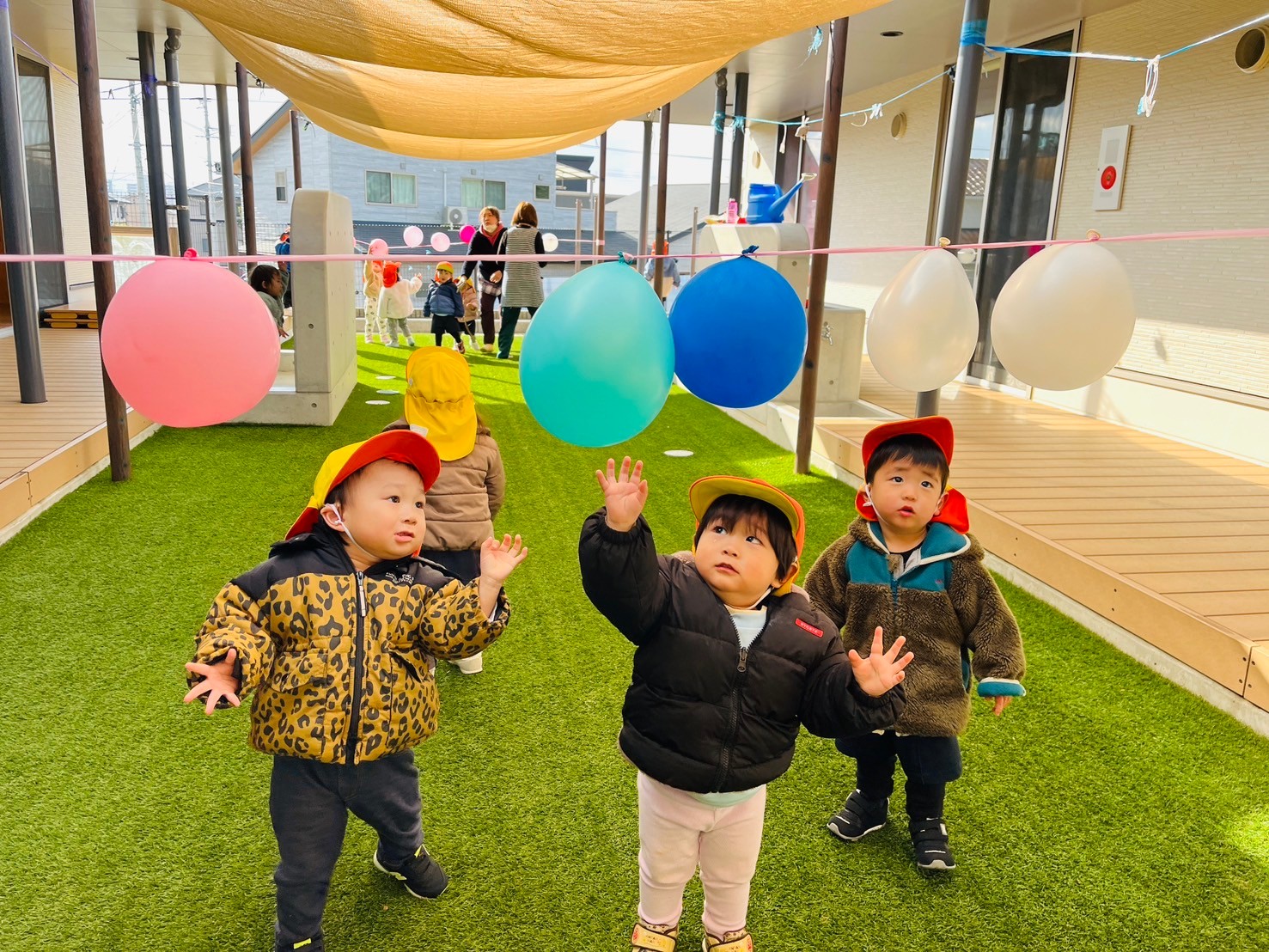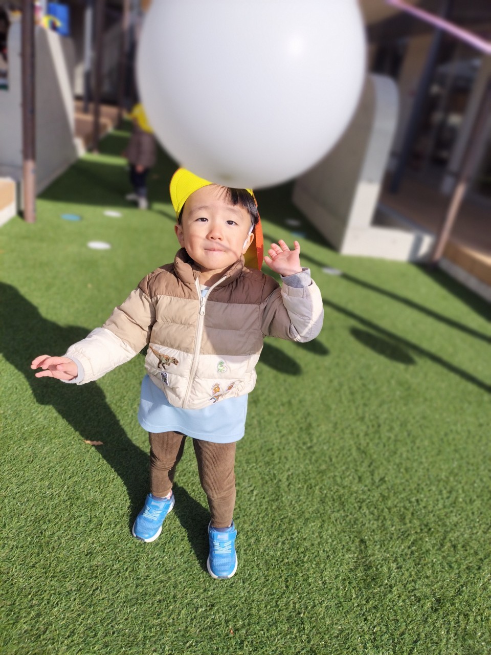 柱に吊るしてあった風船でも遊び🎈タッチしたり風で暴れる風船を捕まえるのに必死なお友達もいました🤣今日はたっぷりと外遊びを満喫できた1日になりました👍🏻